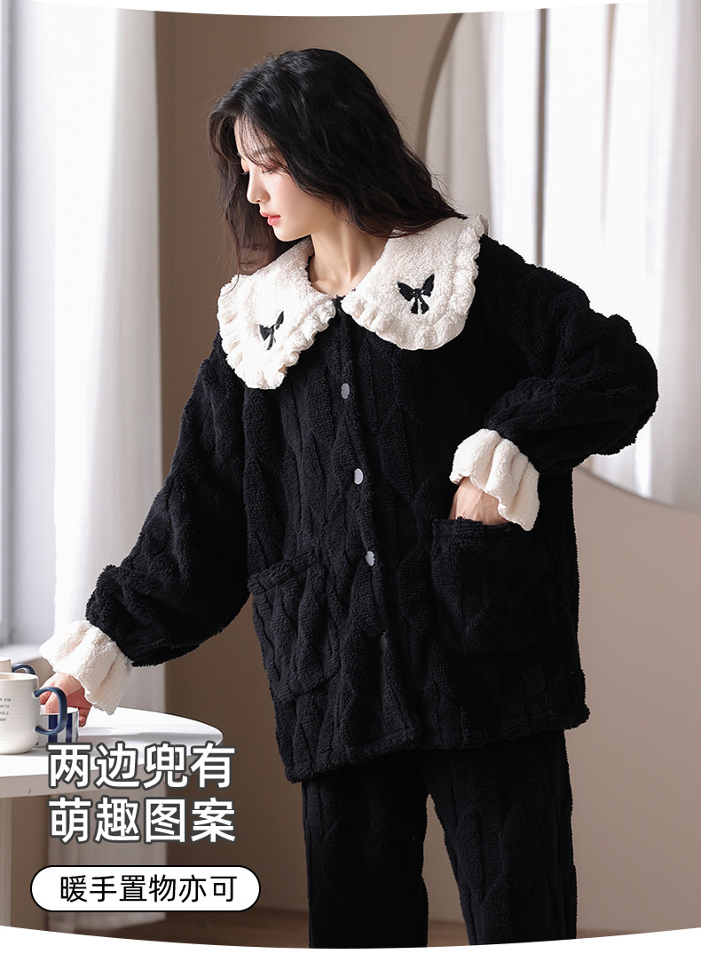 플란넬 잠옷 여자의 겨울 따뜻한 기모 두꺼운 투피스 세트 여자의 산호 양털 아웃웨어 커플 잠옷 남성용스토어 가기