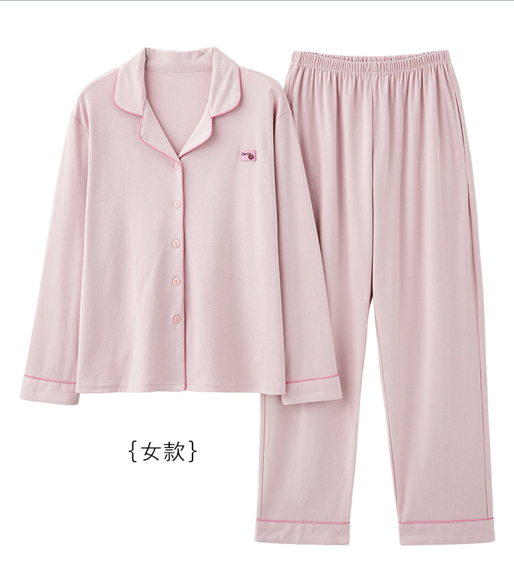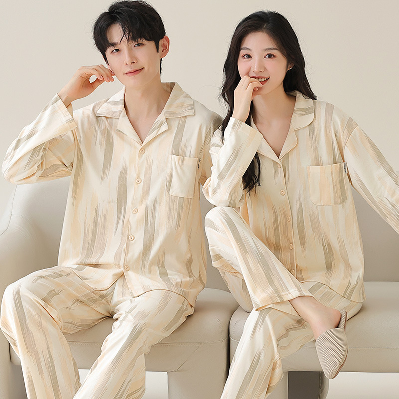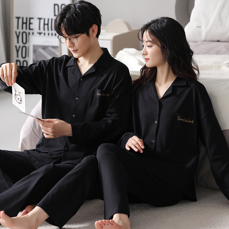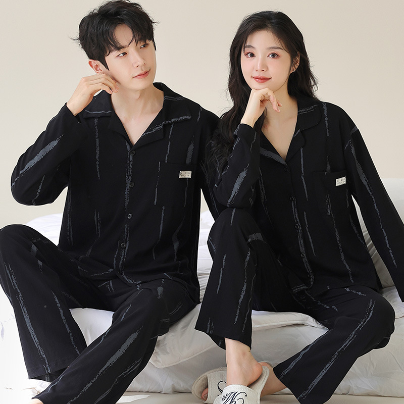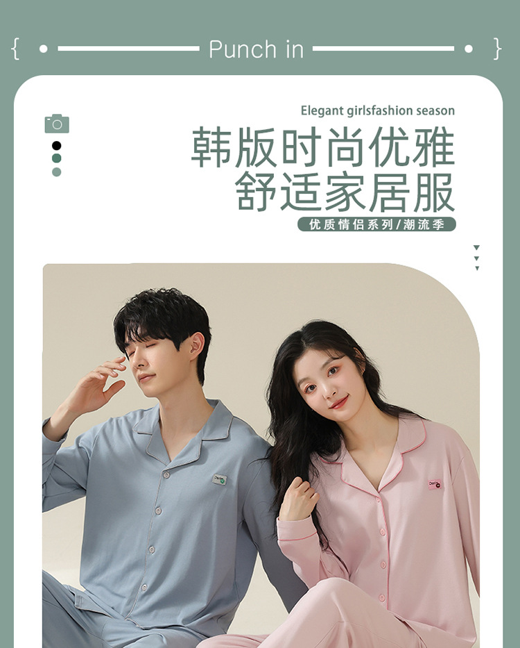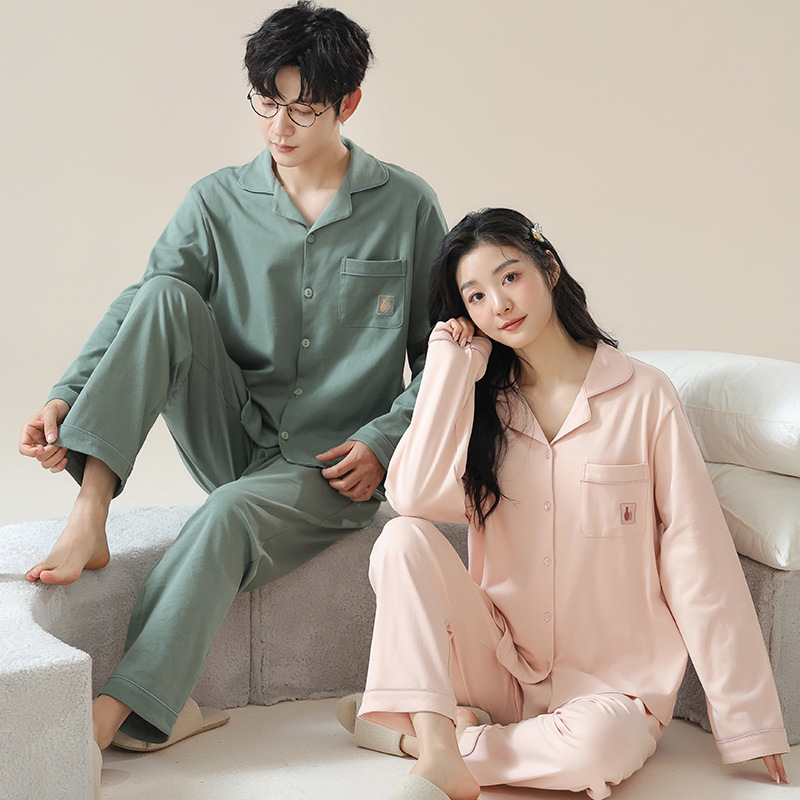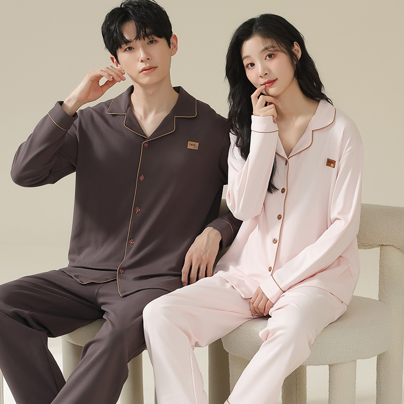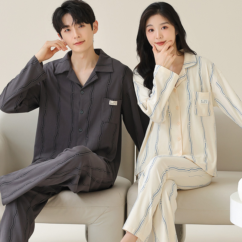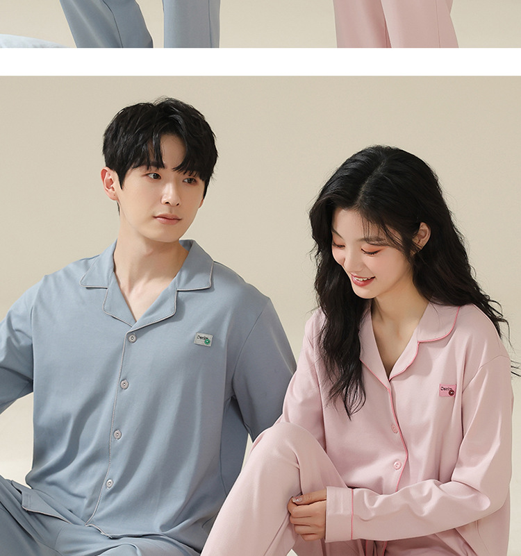 커플 잠옷 카디건 모조 면 긴팔 봄, 가을 옷깃 심플 한국식 남성 정장 여성 홈웨어 편안한 스타일스토어 가기