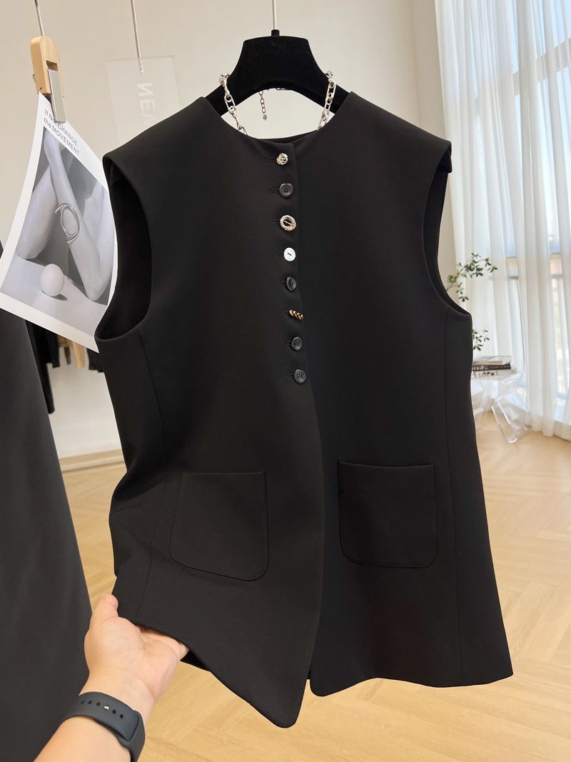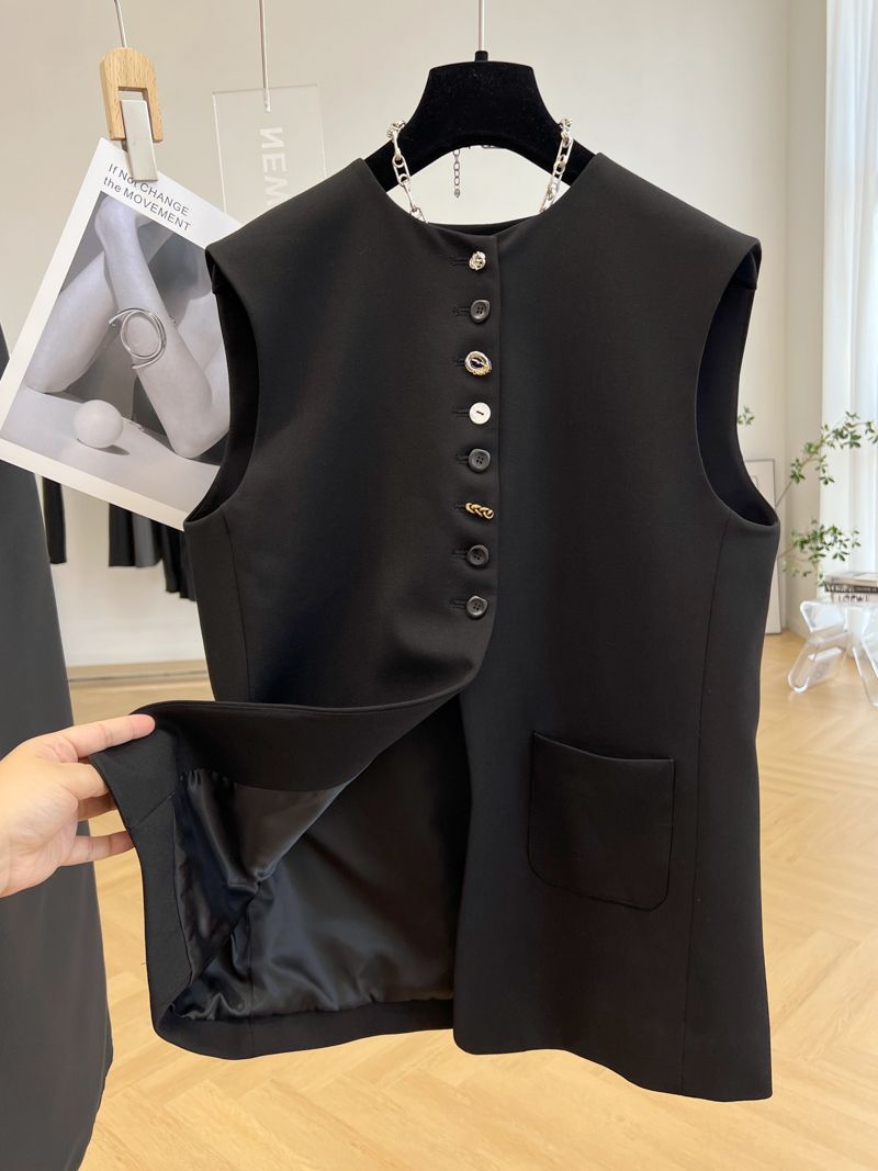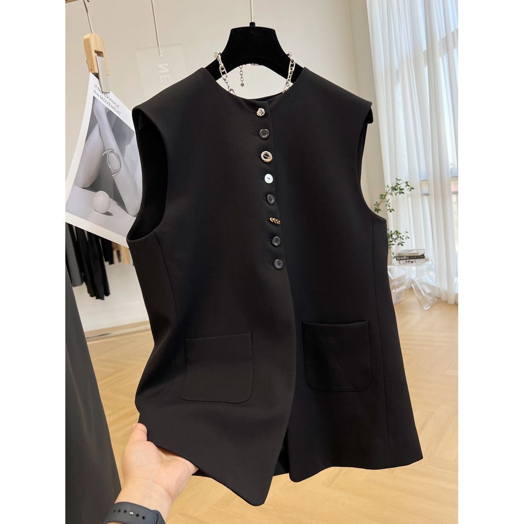 라운드 넥 세트 작은 조끼 여성의 봄과 가을 디자인 감각 민소매 조끼 착용 유럽 독특하고 세련된 외부스토어 가기