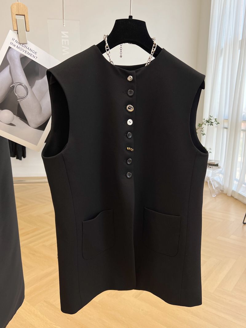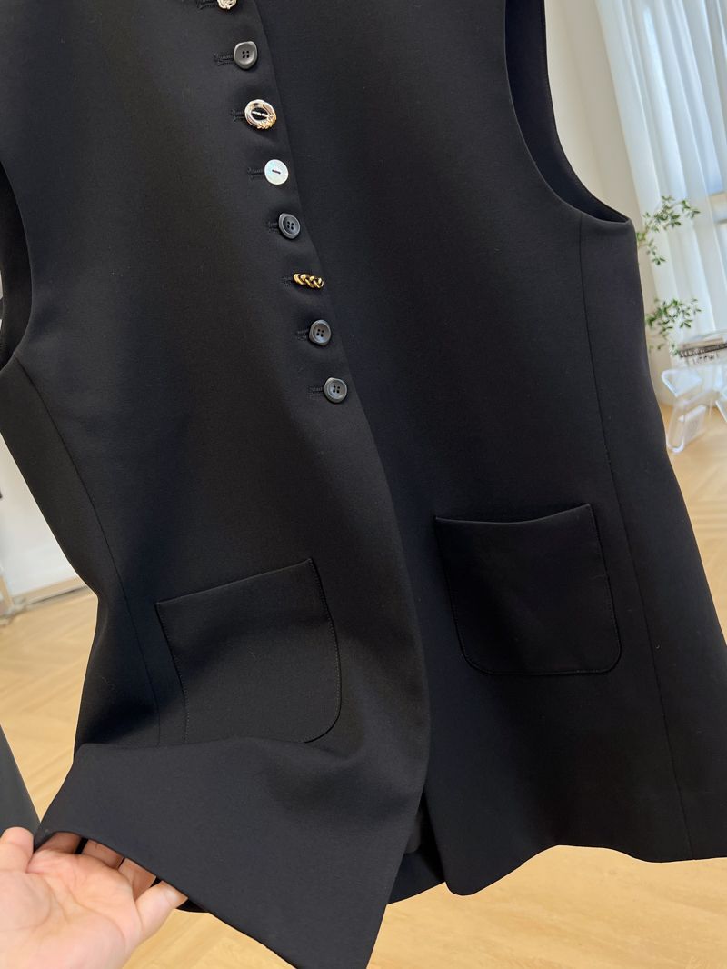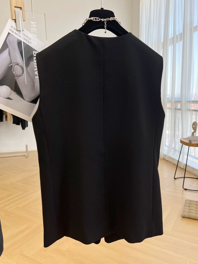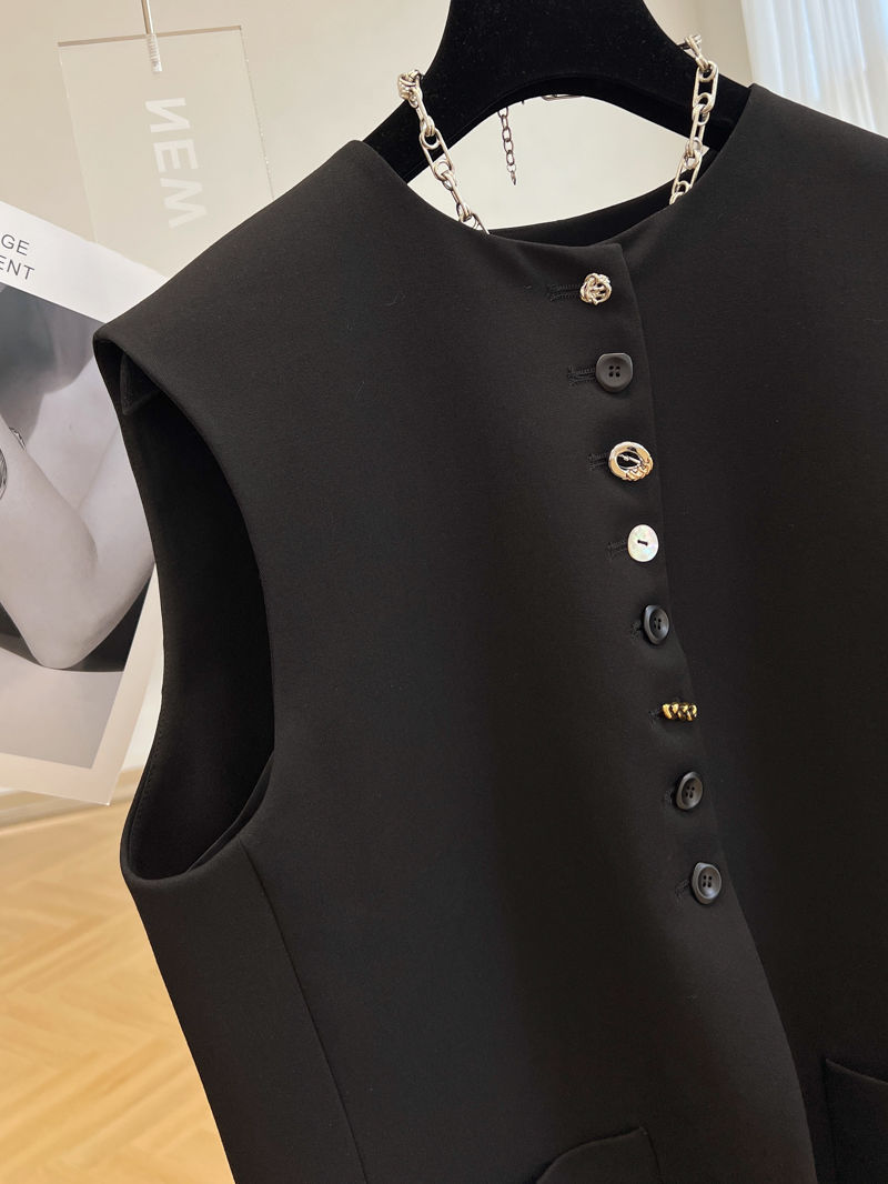 라운드 넥 세트 작은 조끼 여성의 봄과 가을 디자인 감각 민소매 조끼 착용 유럽 독특하고 세련된 외부스토어 가기