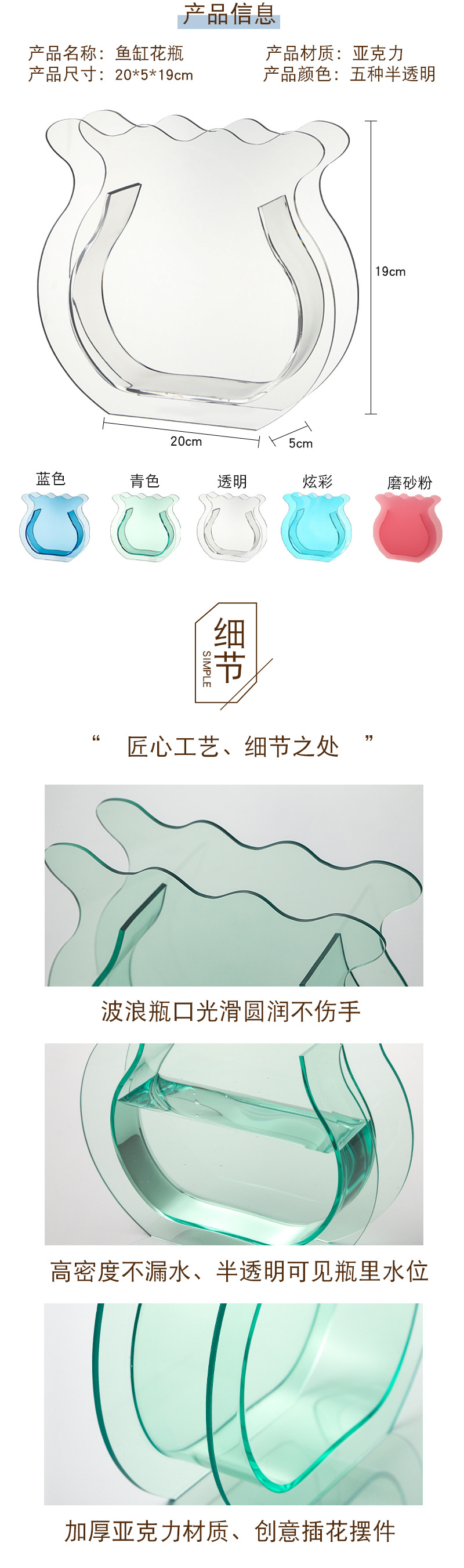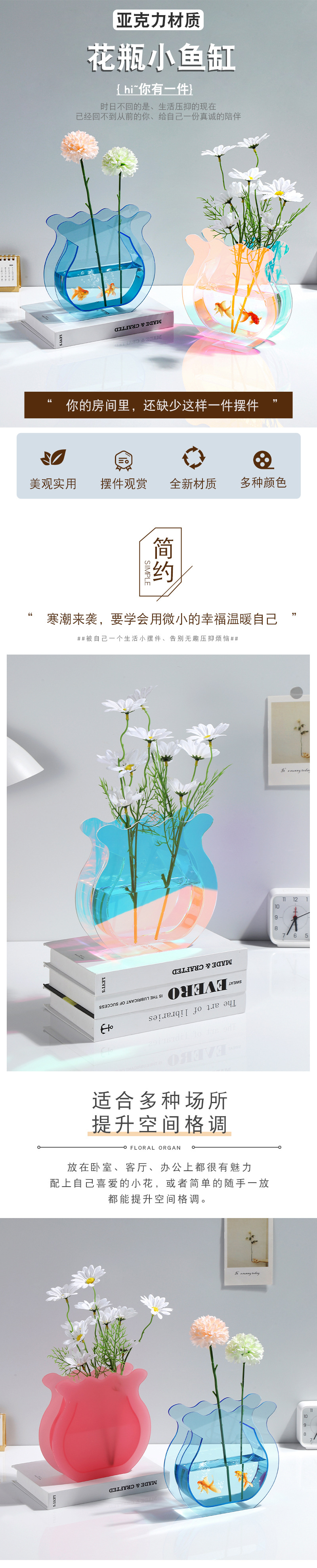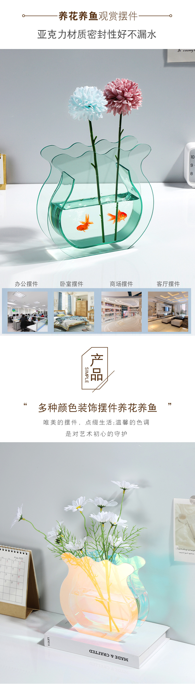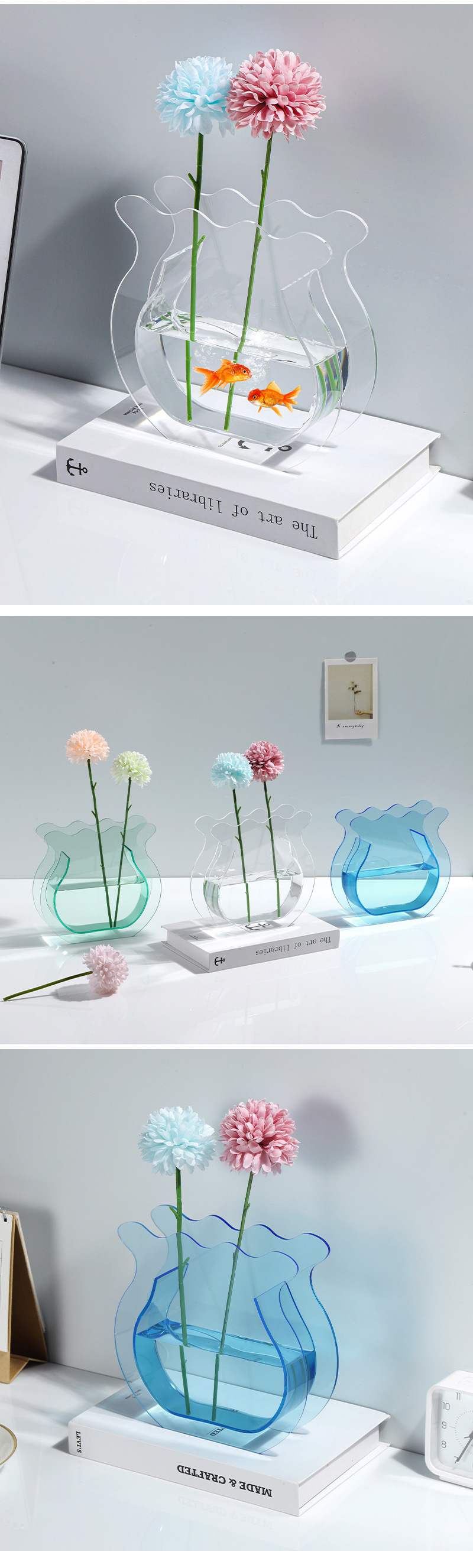 아크릴 꽃병 꽃꽂이 높은 수준의 투명한 창조적 인 색 물고기 탱크 가구 거실 말린 꽃 꽃 장식품 도매스토어 가기