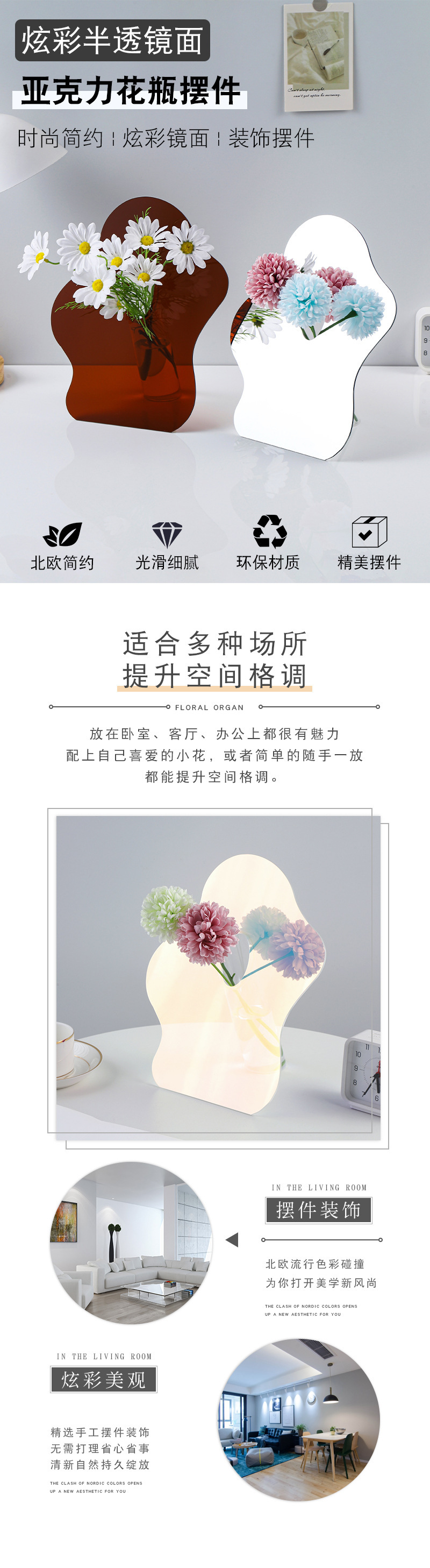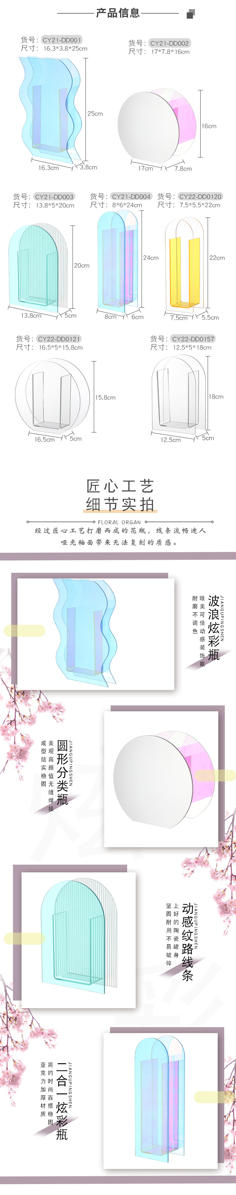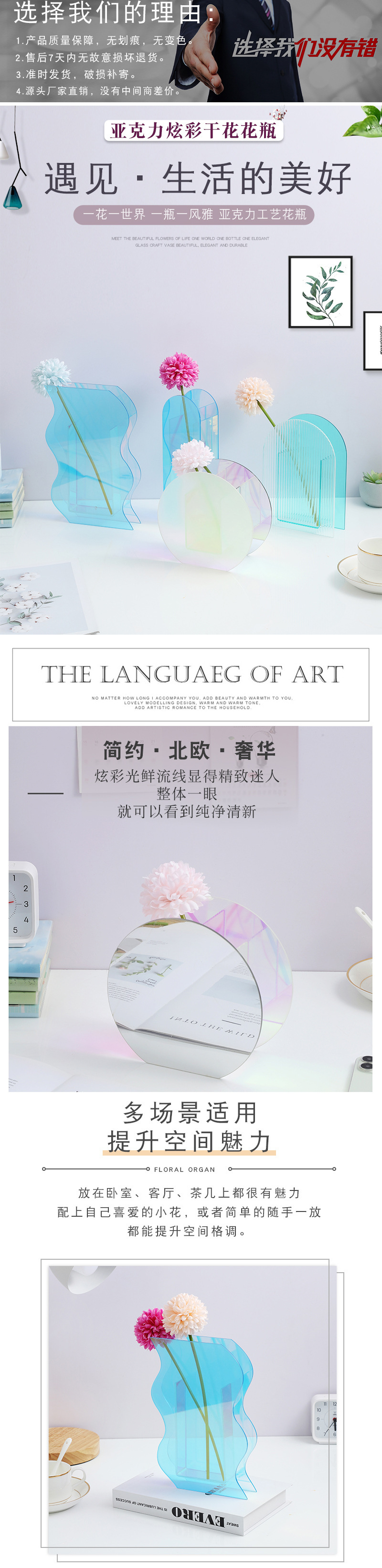 아크릴 꽃병 꽃꽂이 높은 수준의 투명한 창조적 인 색 물고기 탱크 가구 거실 말린 꽃 꽃 장식품 도매