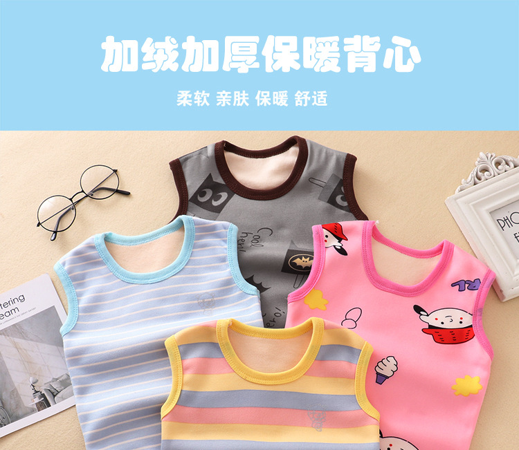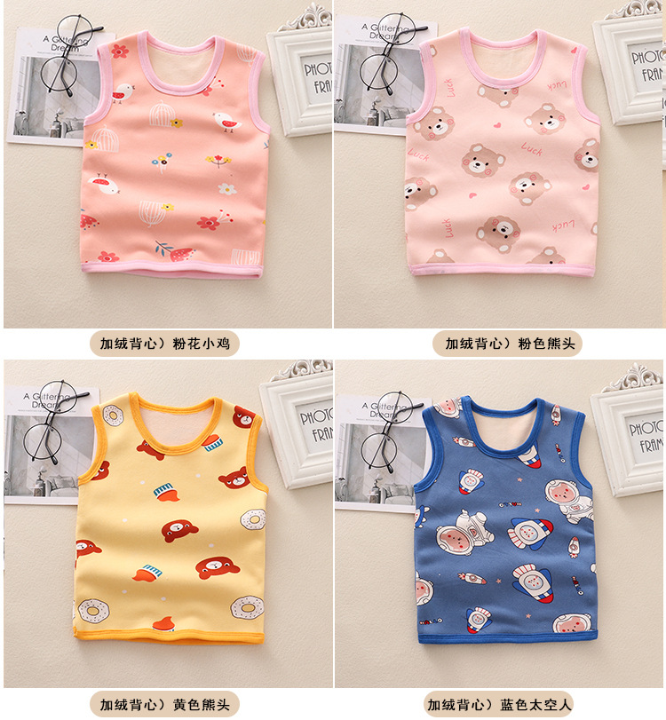 어린이 따뜻한 조끼 남성과 여성의 아동복 기모 두꺼운 어린이 만화 겉옷 조끼 가을과 겨울 탑스토어 가기