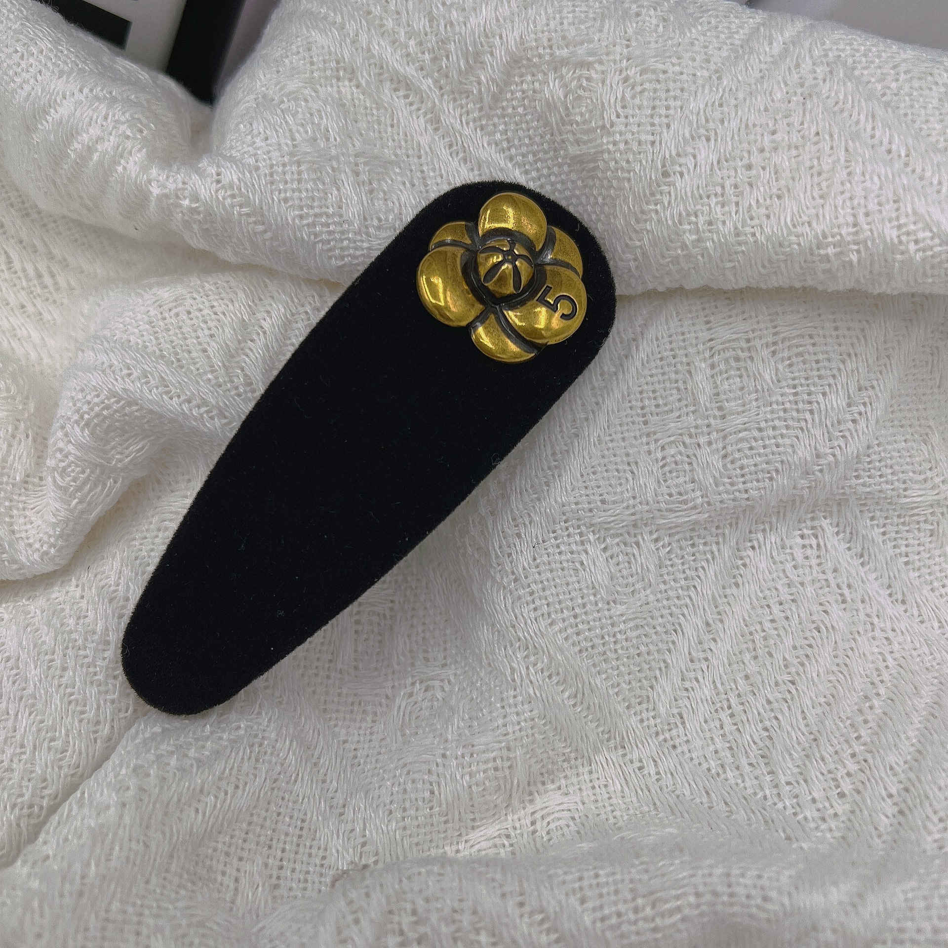 새로운 블랙 벨벳 BB 클립 레트로 샤넬 사이드 클립 고급 감각 깨진 헤어 클립 편지 동백 헤어 클립스토어 가기