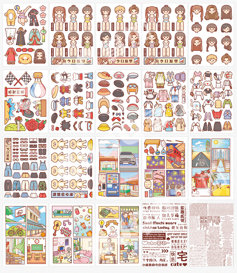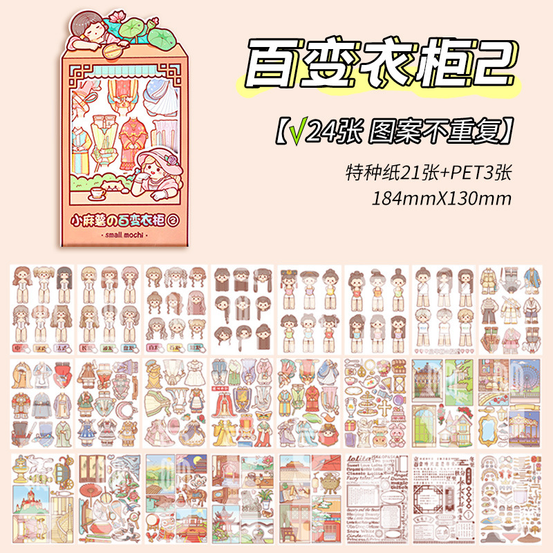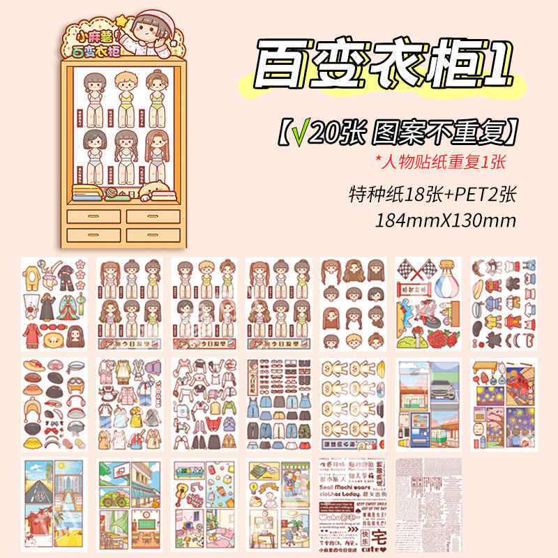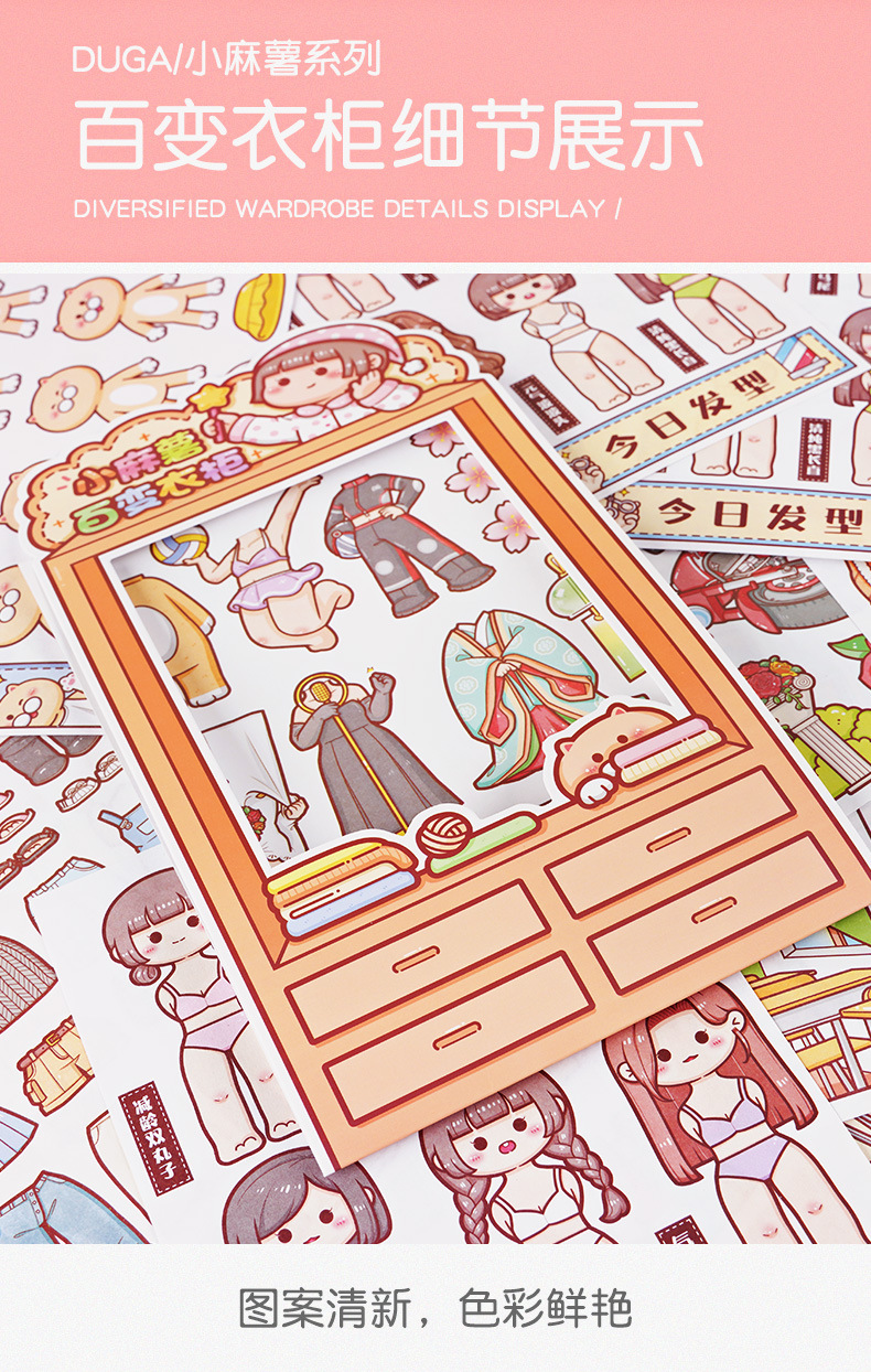 신제품 작은 감자 원피스 스티커 다양 한 옷장 2 초 플레이 원피스 업 스티커 소녀 심장 만화 귀여운 소녀
