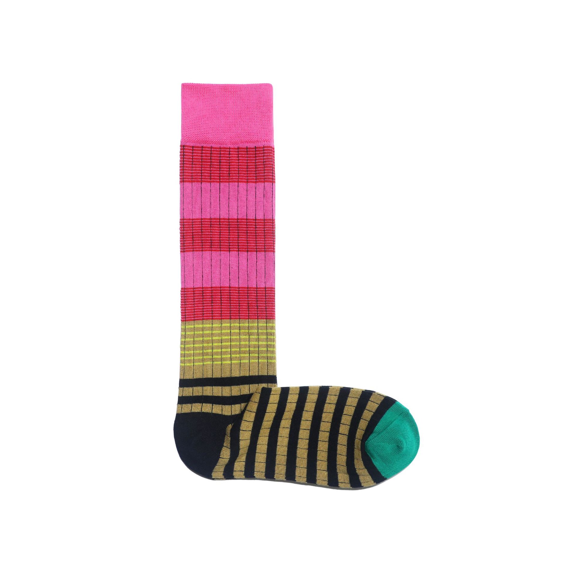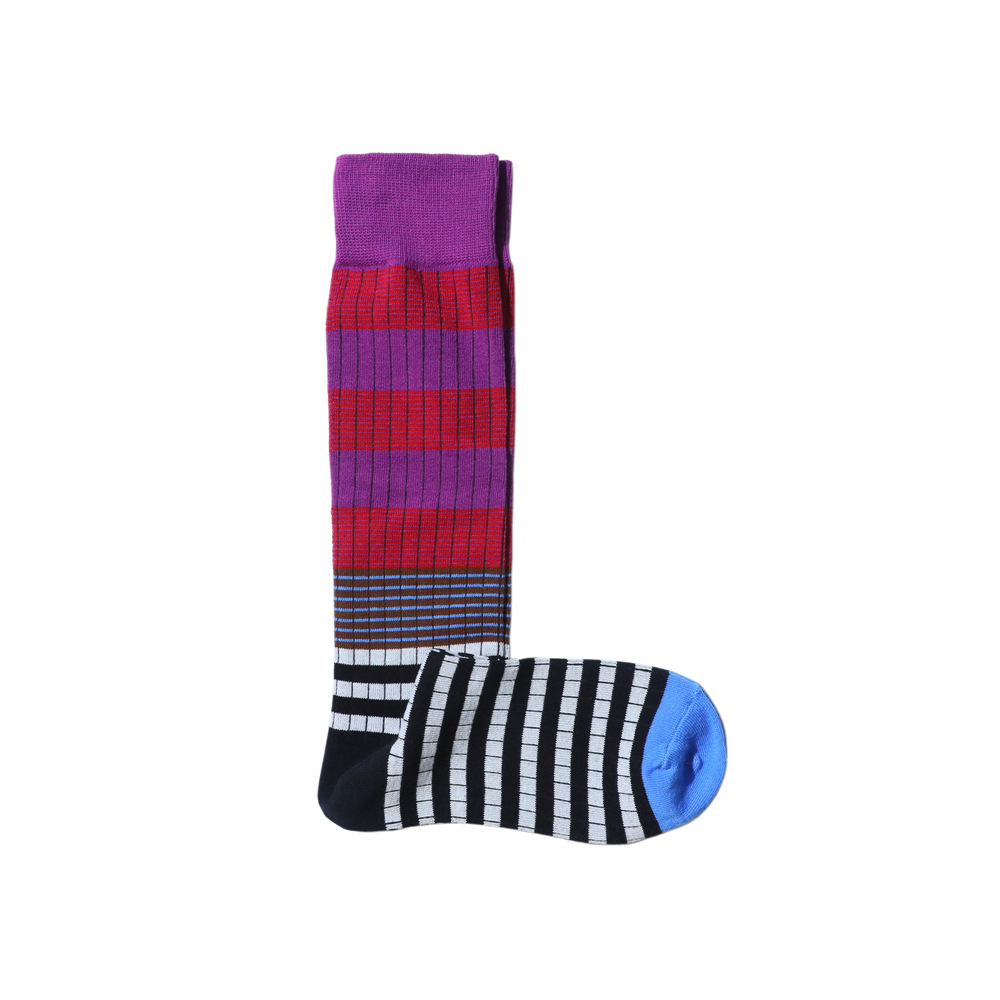 콘트라스트 컬러 스트라이프 송아지 양말 온라인 인기 동적 색상 매칭 맞춤형 스트라이프 그라데이션 컬러 가을과 겨울 송아지 양말 여성 양말스토어 가기