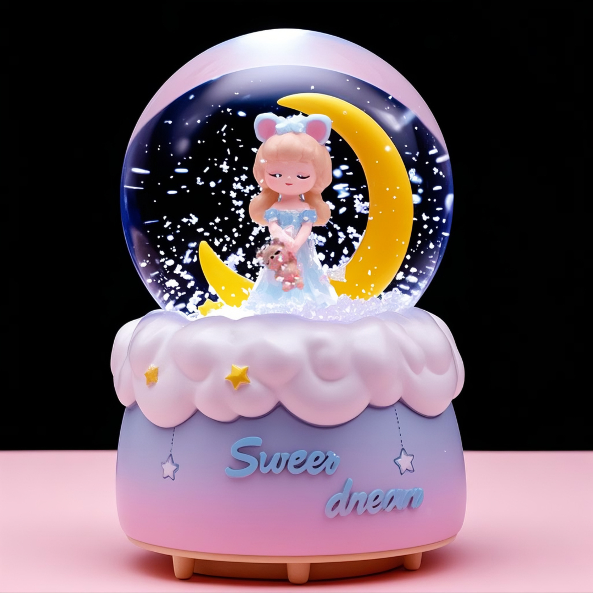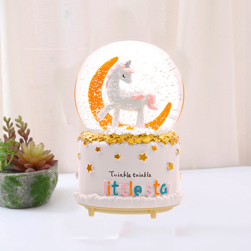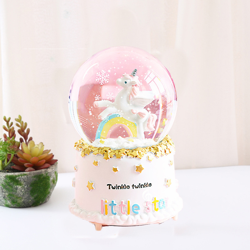 유니콘 냉동 크리스탈 볼 뮤직 박스 스노우 모카 소녀 홈 데스크탑 장식품 선물