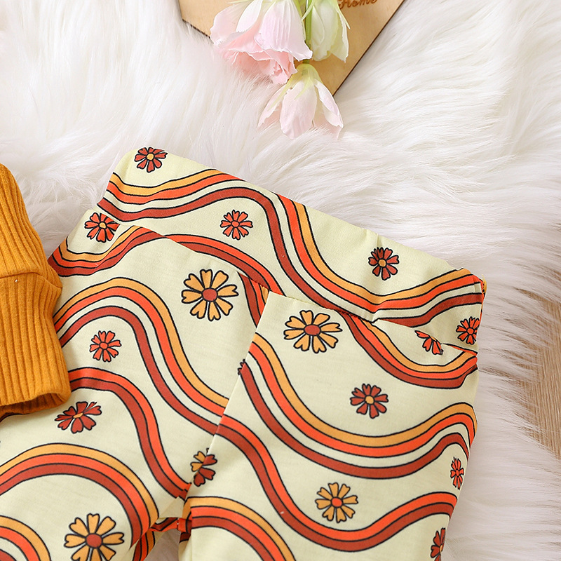 가을 아동복 유럽풍 여아 니트 끈 없는 탑+웨이브 플라워 플레어 롱 팬츠스토어 가기