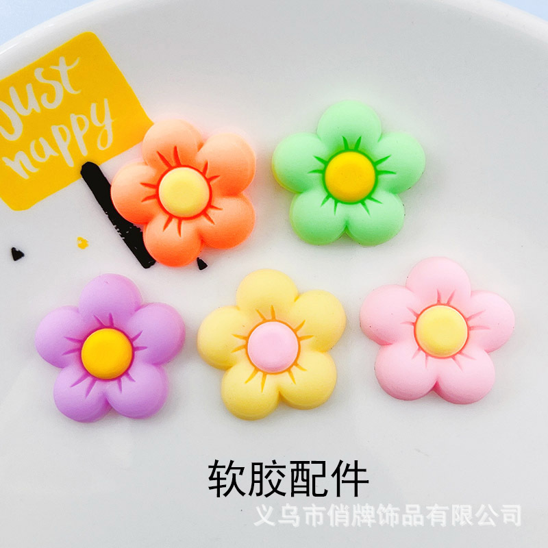 PVC 부드러운 접착제 컬러 5 꽃잎 꽃 diy 어린이 머리 로프 머리핀 화장실 패드 장식 패치 도매스토어 가기