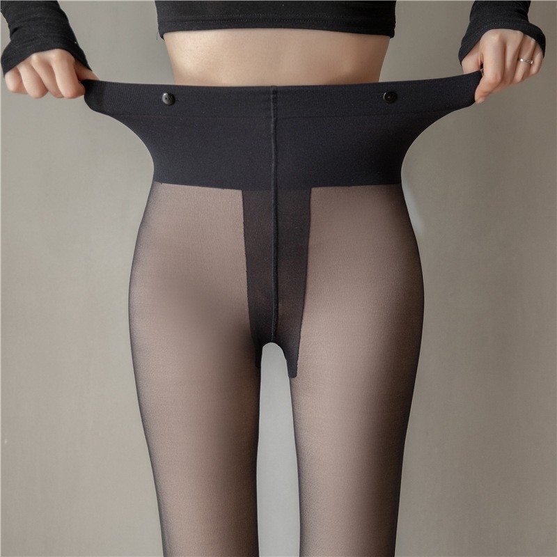 가을과 겨울 버튼 외부 분리 가능한 더블 레이어 맨손 다리 아티팩트 레깅스 기모 두꺼운 천연 피부-여성용 투명 팬티 스타킹