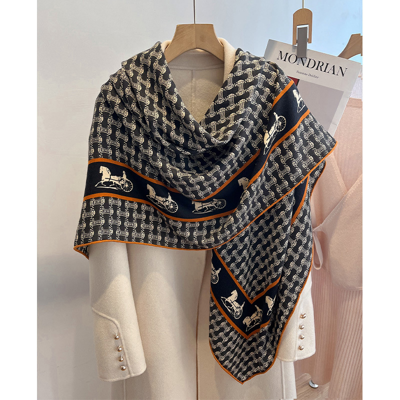 실크 울 스카프 여성용 대형 스퀘어 스카프 실크 스카프 2022 가을과 겨울을위한 새로운 캐시미어 숄스토어 가기