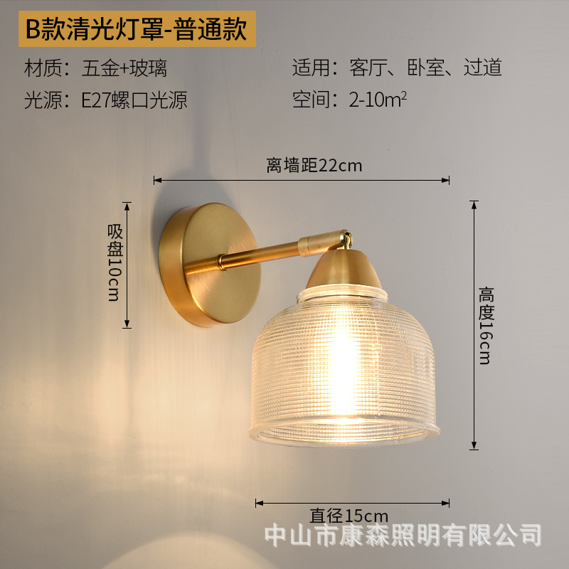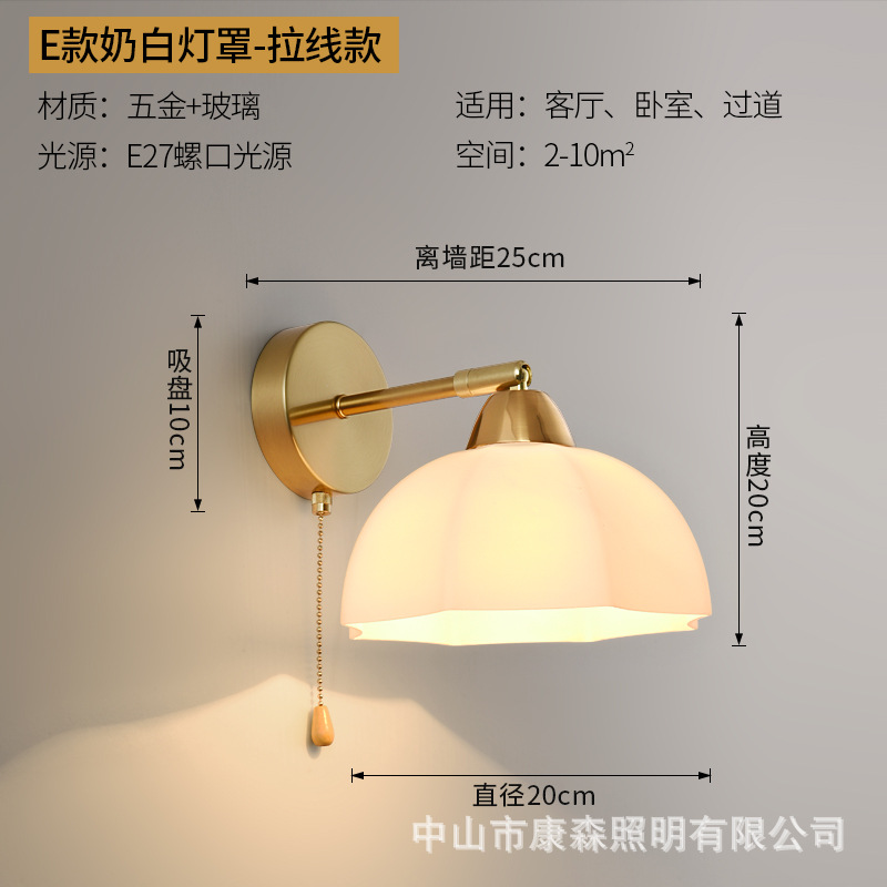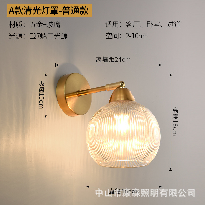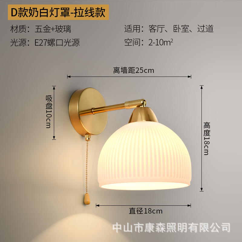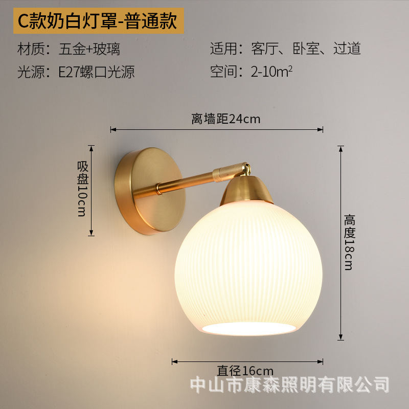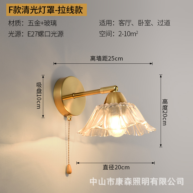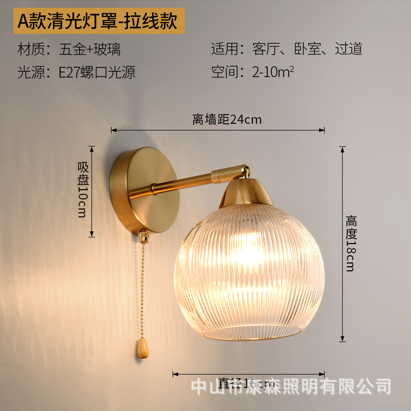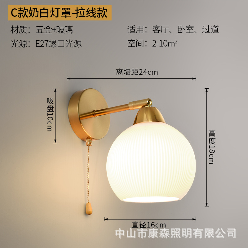 벽 램프 북유럽 복고풍 빛 고급 유리 벽 램프 침대 옆 통로 램프 간단한 현대 케이블 스위치 B & B 계단