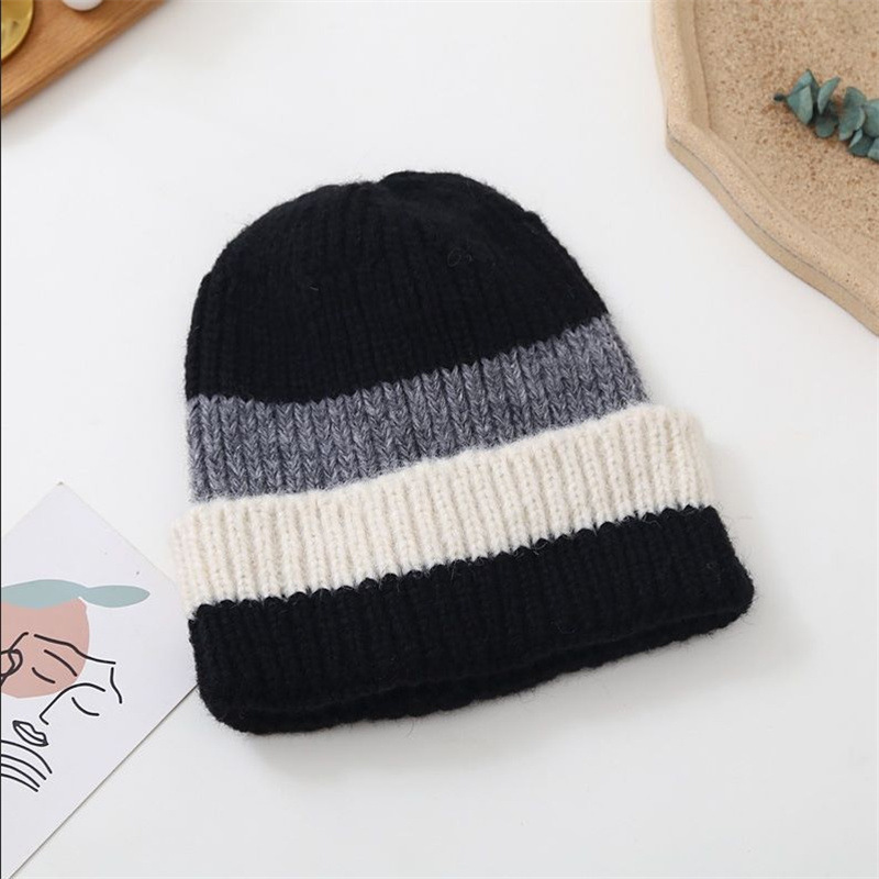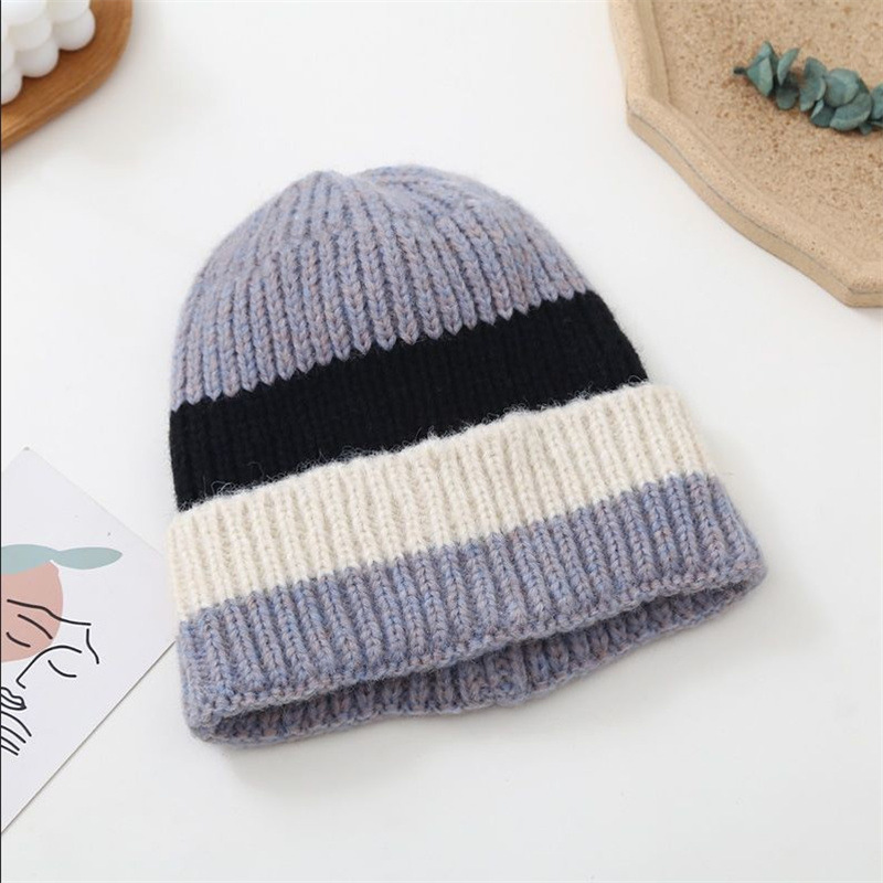 모자 여성의 가을과 겨울 대비 색상 울 모자 일본식 복고풍 귀 보호 따뜻한 니트 모자 한국식 풀오버 콜드 모자 트렌디
