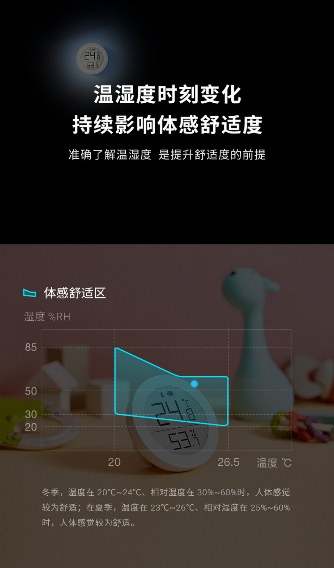 Qingping 블루투스 온도 및 습도 측정기 라이트 홈 지능형 기록 실내 센서 온도계스토어 가기