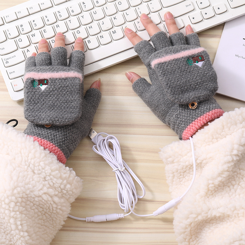 2022 겨울 새로운 따뜻한 장갑 만화 학생 usb 난방 플립 장갑 사무실 장갑스토어 가기