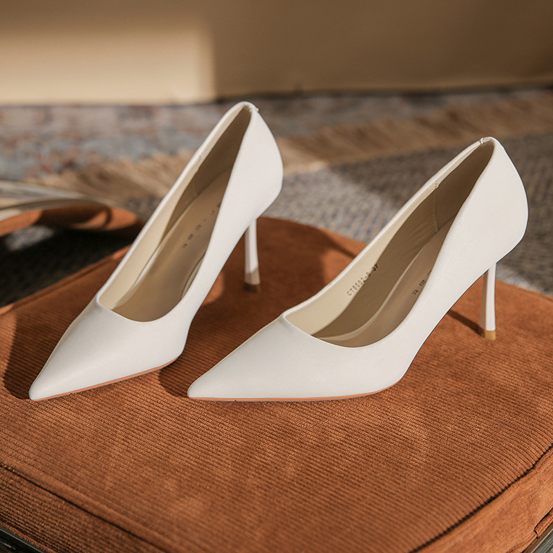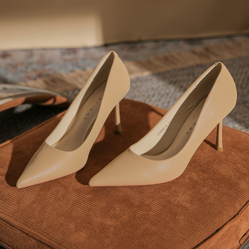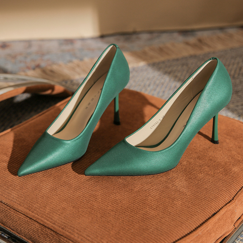 8582 [양가죽] 여성용 하이힐, 슬림 힐, 2025 신상 뾰족한 앞코, 다용도 그린 얕은 입구 프렌치 스타일 슈즈스토어 가기