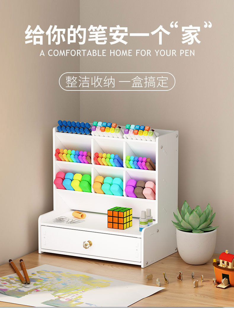 대용량 서랍 유형 책 스탠드 스토리지 랙 오피스 마커 펜 스토리지 랙 데스크탑 수채화 펜 스토리지 박스