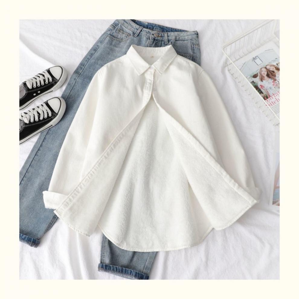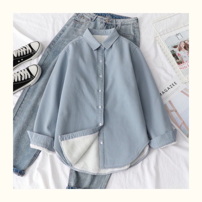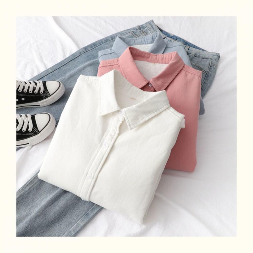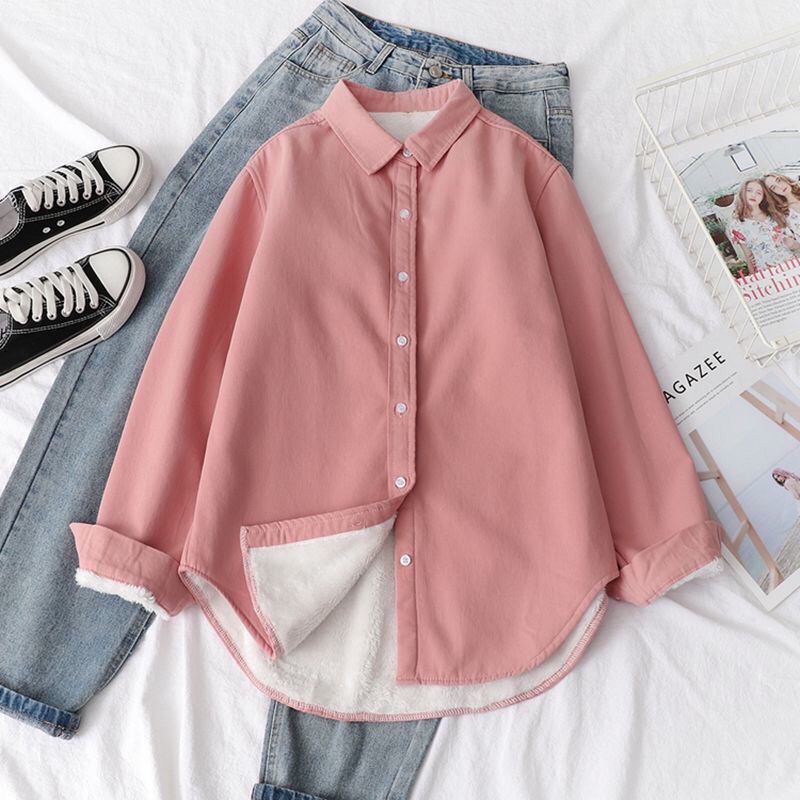 단색 기모 따뜻한 셔츠 여자의 2022 가을과 겨울 한국 느슨한 예술적 두꺼운 외국 스타일 셔츠 재킷스토어 가기