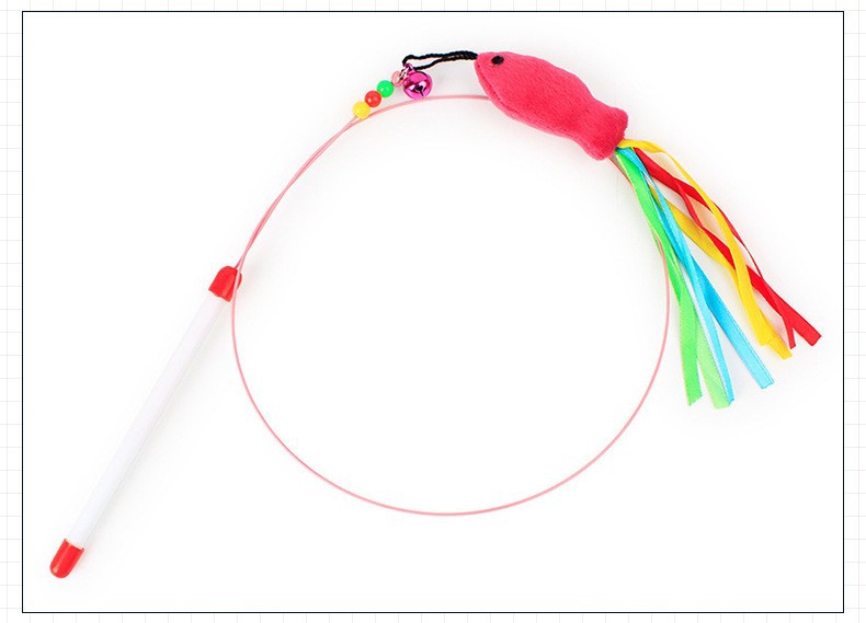 미 재미 고양이 스틱 강철 와이어 작은 물고기 탄성 고양이 장난감 벨 깃털 고양이 대화 형 장난감 재고 도매