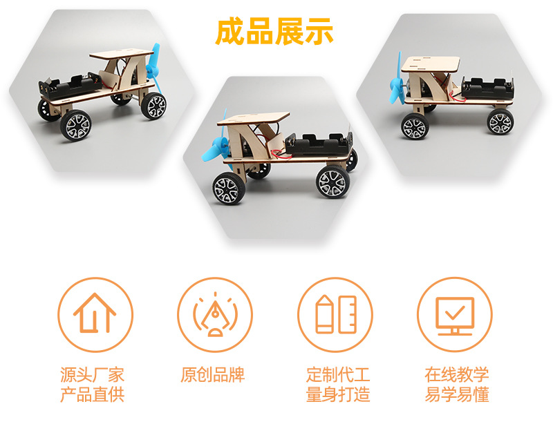 공기 역학적 자동차 전기 풍력 자동차 조립형 기술 소형 DIY 수제품 소재 패키지
