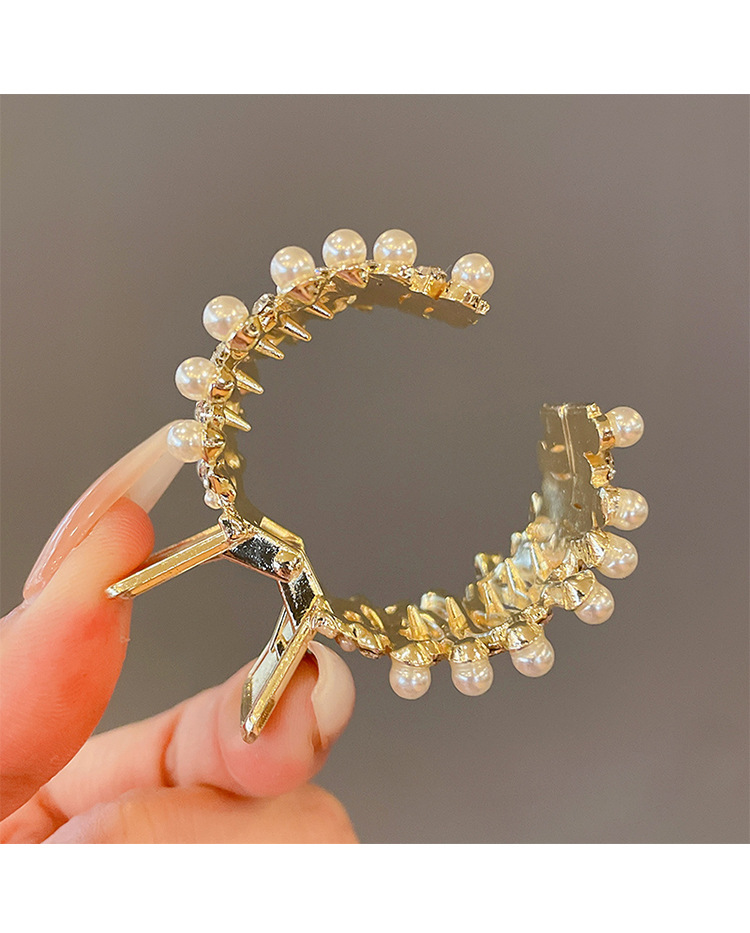 하이 포니 테일 고정 헤어 액세서리 진주 그랩 클립 여성용 풀 다이아몬드 하프 하이 포니 테일 버클 헤어 클립 상어 클립 모자