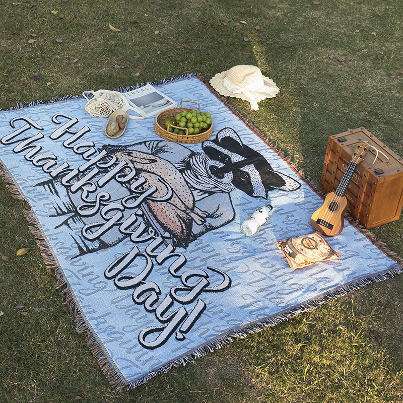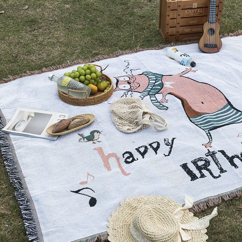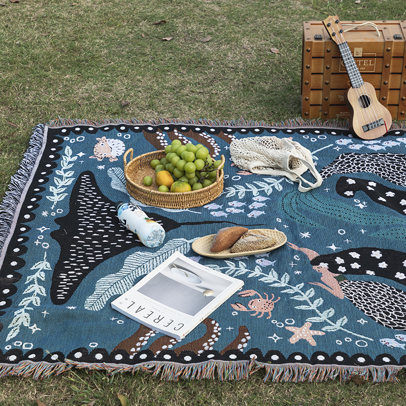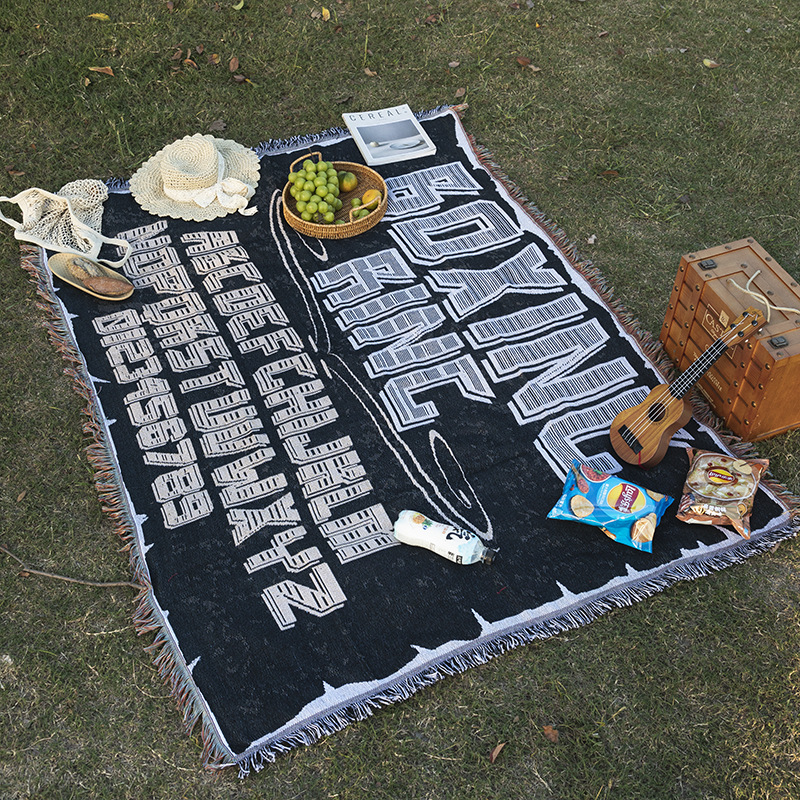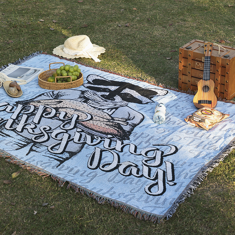 맞춤형 자카드 직조 피크닉 담요 수크레 야외 캠핑 담요 소파 담요 다기능 라인 담요 방습 피크닉 매트스토어 가기