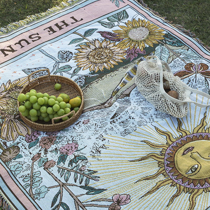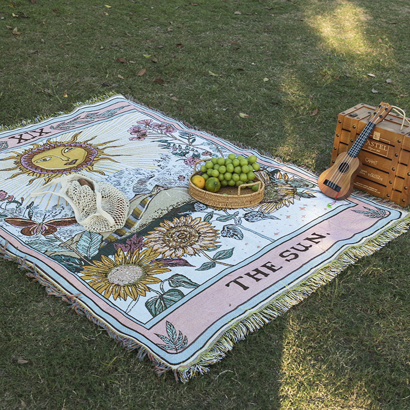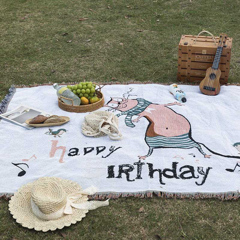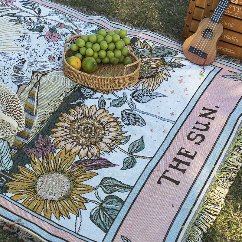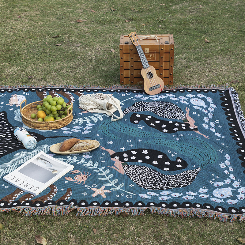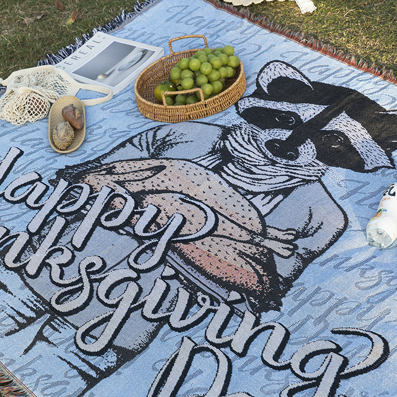 맞춤형 자카드 직조 피크닉 담요 수크레 야외 캠핑 담요 소파 담요 다기능 라인 담요 방습 피크닉 매트스토어 가기