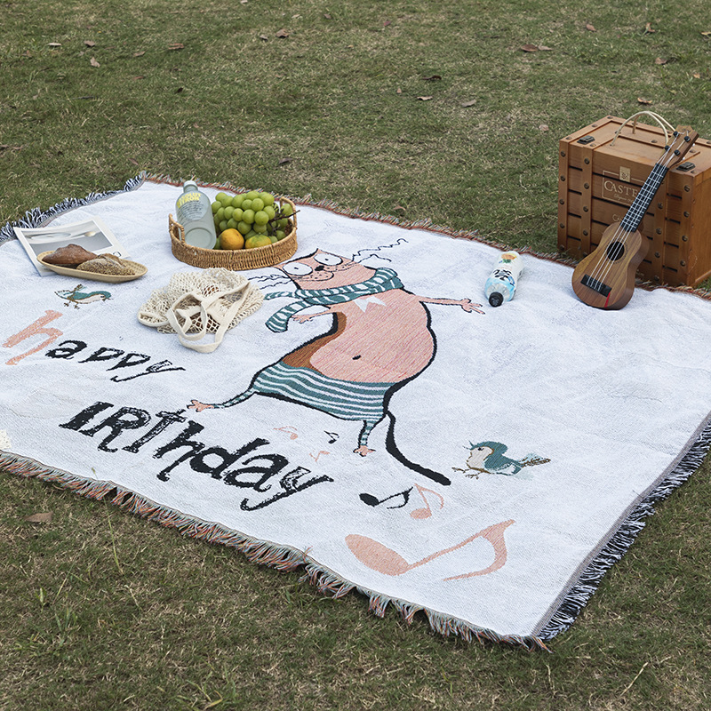 맞춤형 자카드 직조 피크닉 담요 수크레 야외 캠핑 담요 소파 담요 다기능 라인 담요 방습 피크닉 매트
