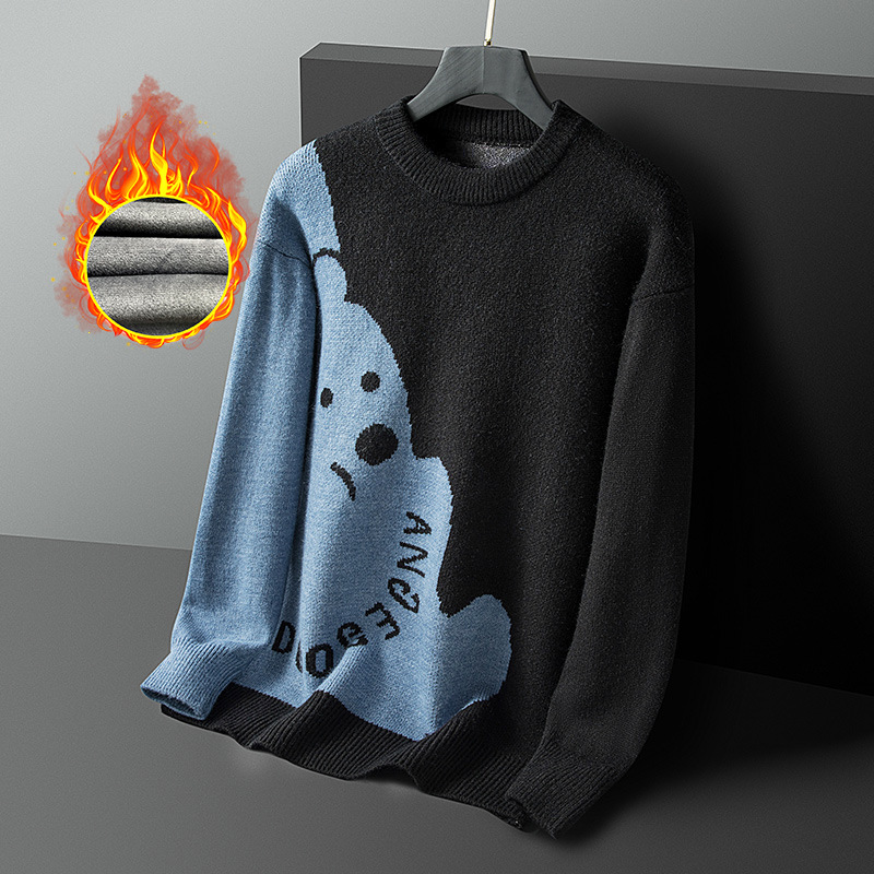 가을과 겨울 타이드 브랜드 색상 일치 만화 곰 스웨터 남자의 2022 느슨한 게으른 바람 기모 스웨터의 새로운 한국어 버전