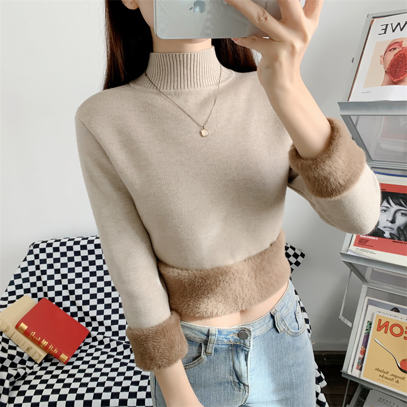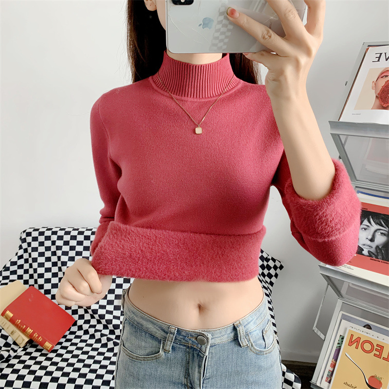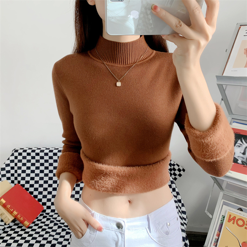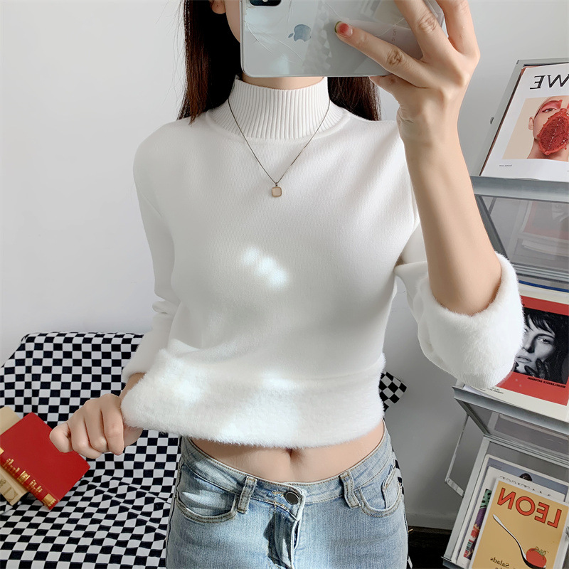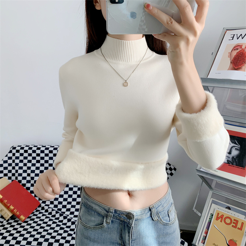 Dropshipping 가을, 겨울 두꺼운 원피스 벨벳 플러스 벨벳 스웨터 여성 겨울 하프 터틀넥 내부 밍크 벨벳 바닥 셔츠 유행스토어 가기