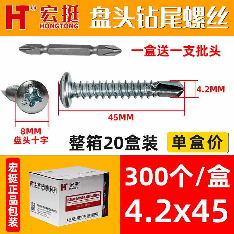 Honging 카운터 싱크 헤드 드릴 테일 스크류 팬 헤드 대형 플랫 헤드 셀프 드릴링 셀프 태핑 더브 테일 와이어 M4.2M4.8/25/32 더브 테일 네일스토어 가기