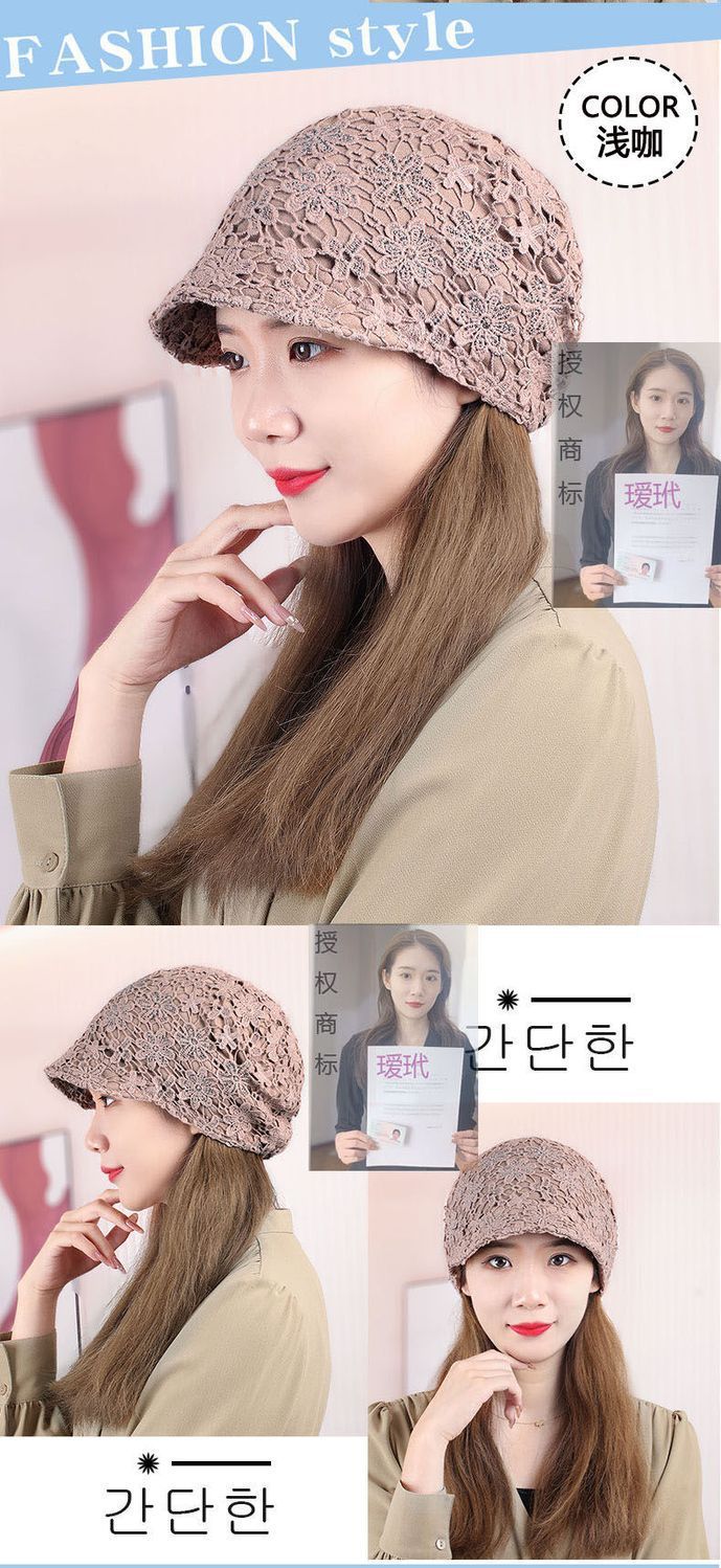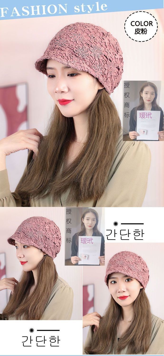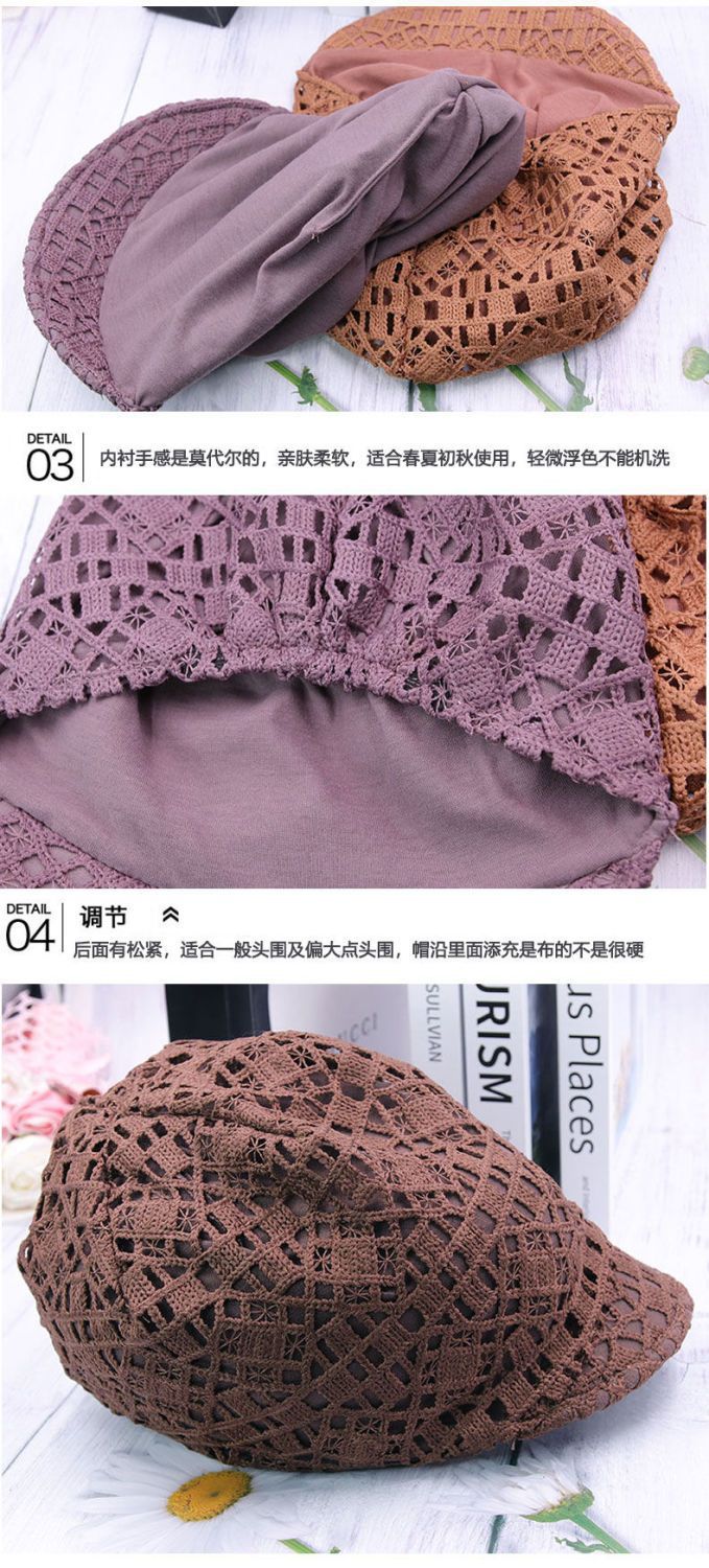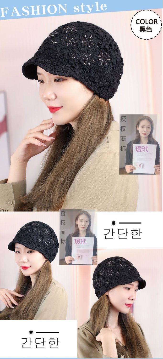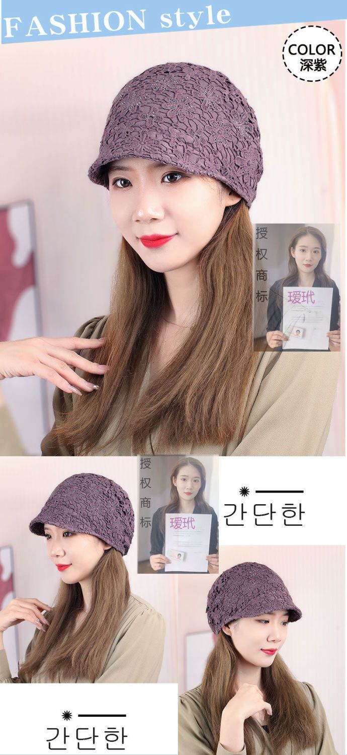 봄/여름 2022 New 중공 꽃 소프트 에지 오리 혀 팔각형 캡 큰머리 둘레 대머리 흰 머리 모자 여성스토어 가기