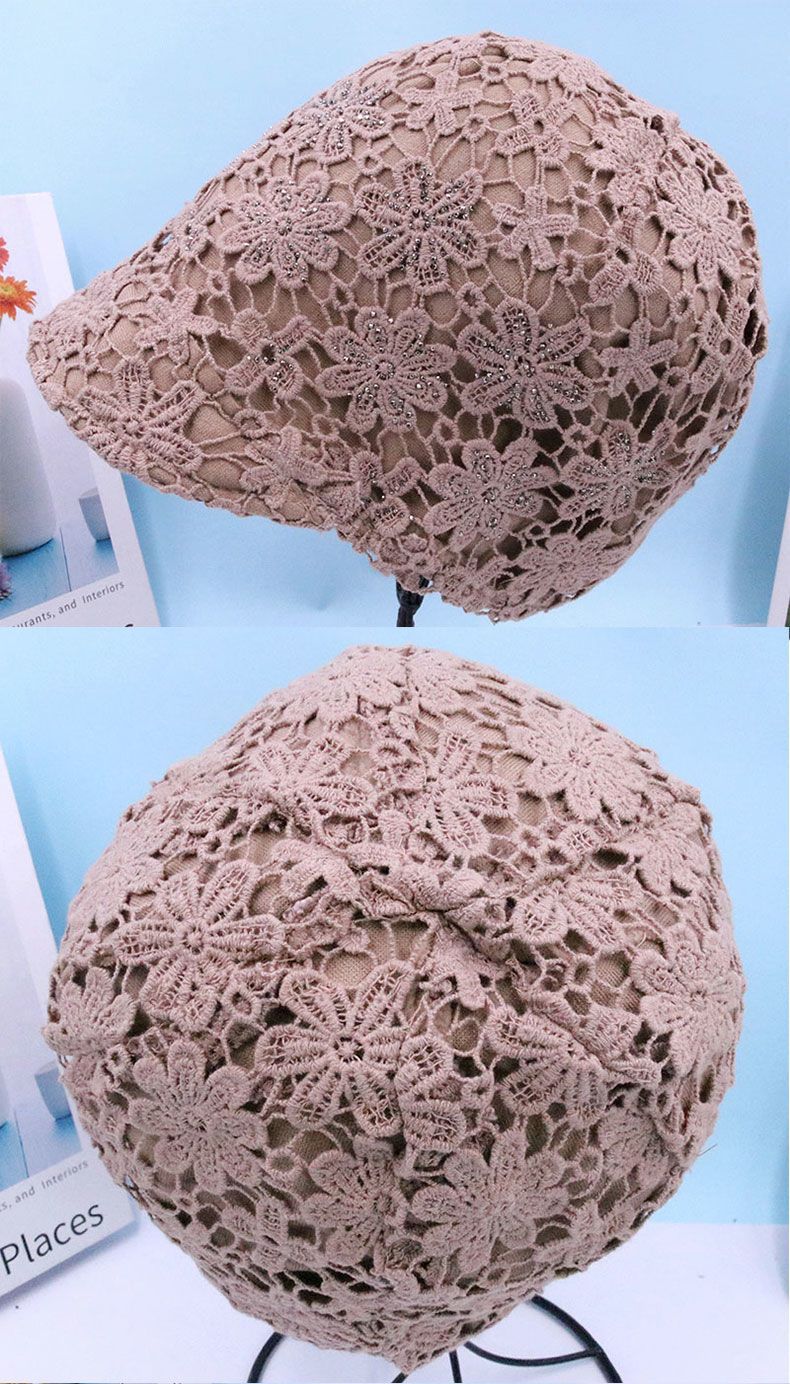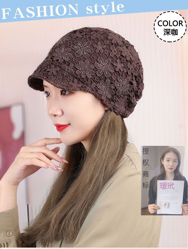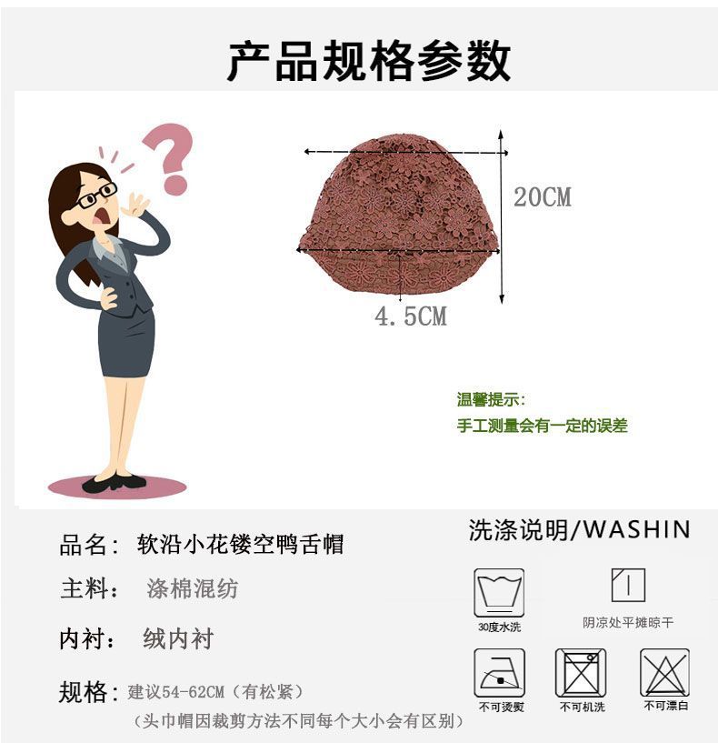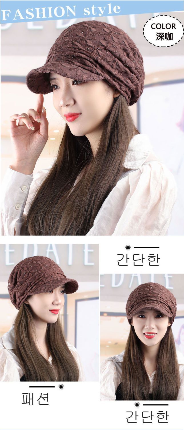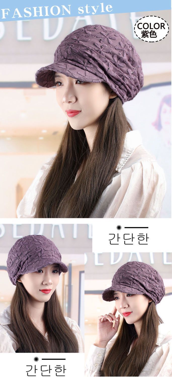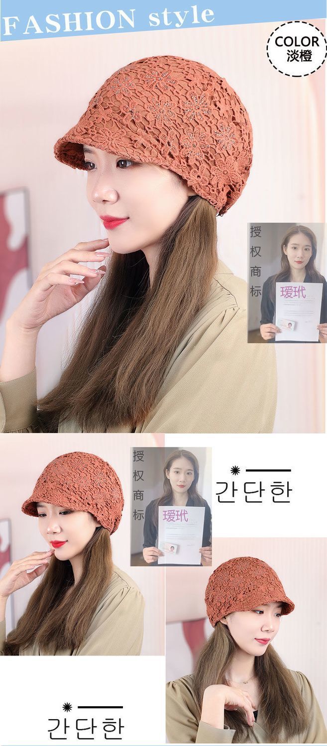 봄/여름 2022 New 중공 꽃 소프트 에지 오리 혀 팔각형 캡 큰머리 둘레 대머리 흰 머리 모자 여성스토어 가기