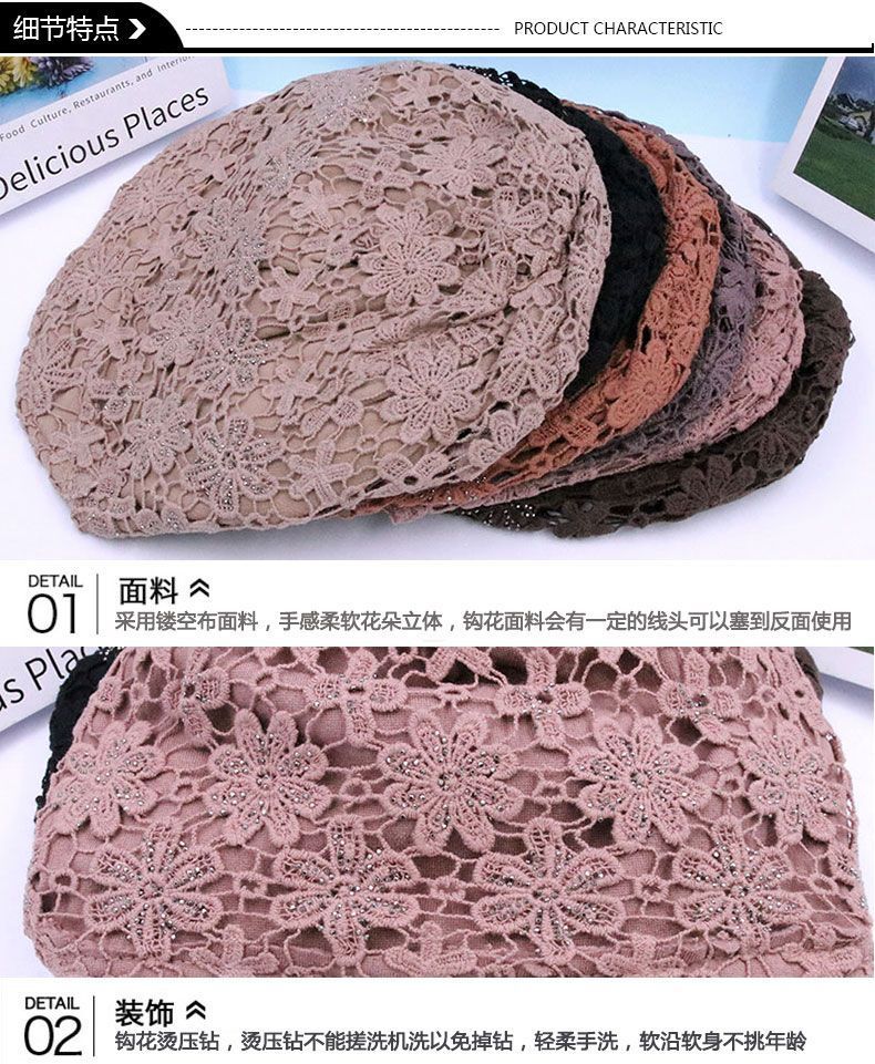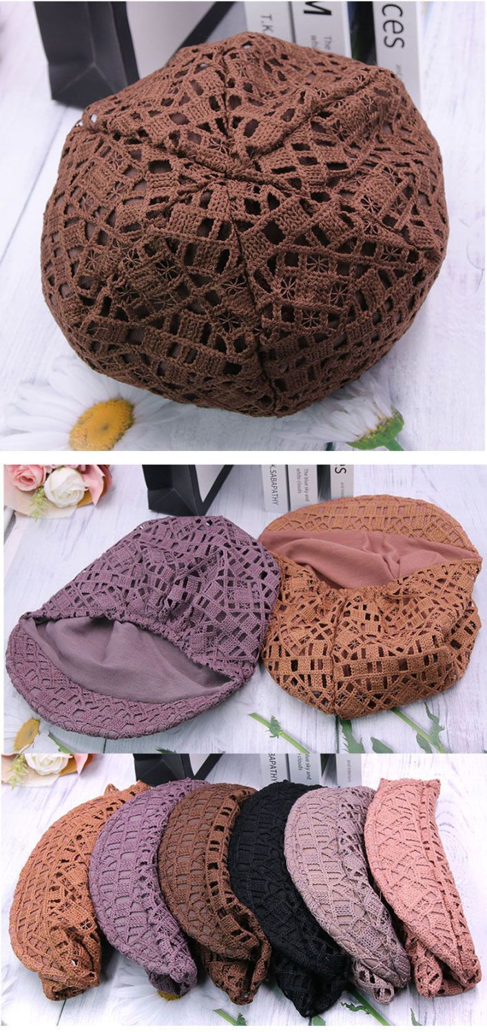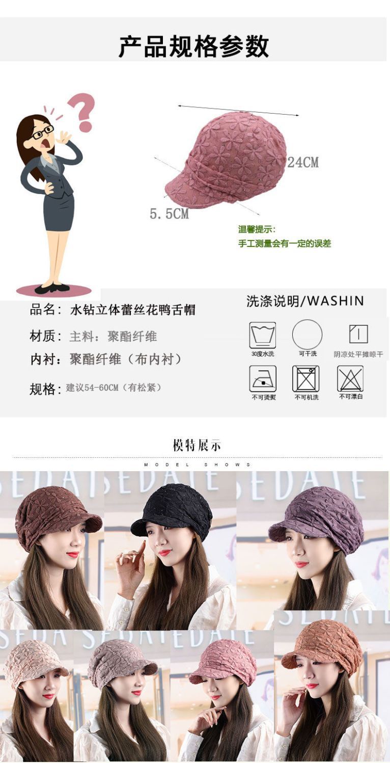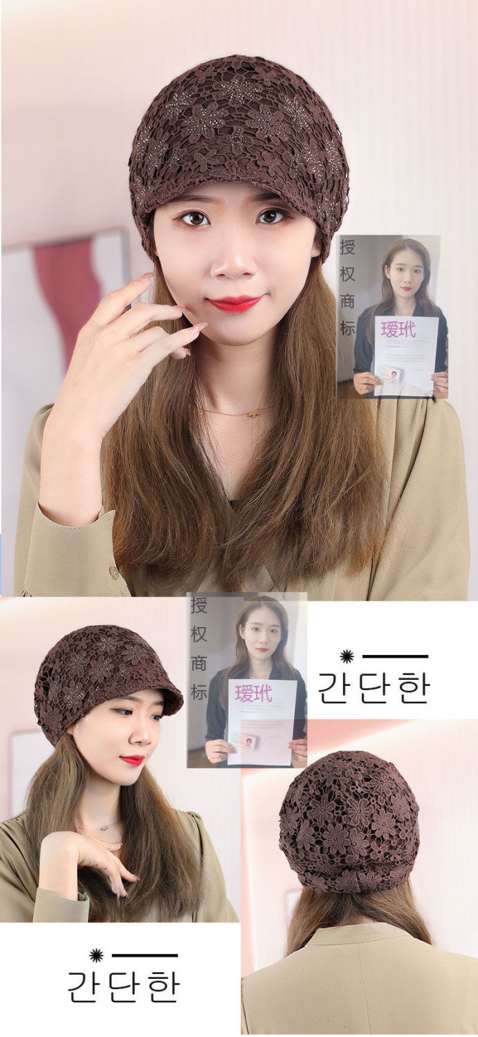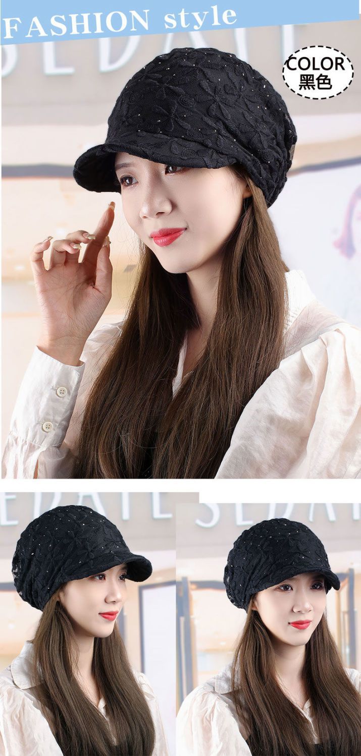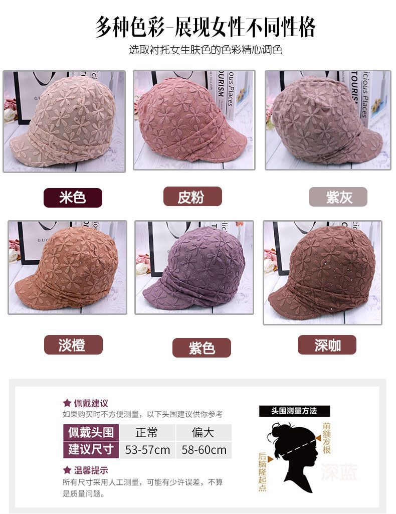 봄/여름 2022 New 중공 꽃 소프트 에지 오리 혀 팔각형 캡 큰머리 둘레 대머리 흰 머리 모자 여성스토어 가기