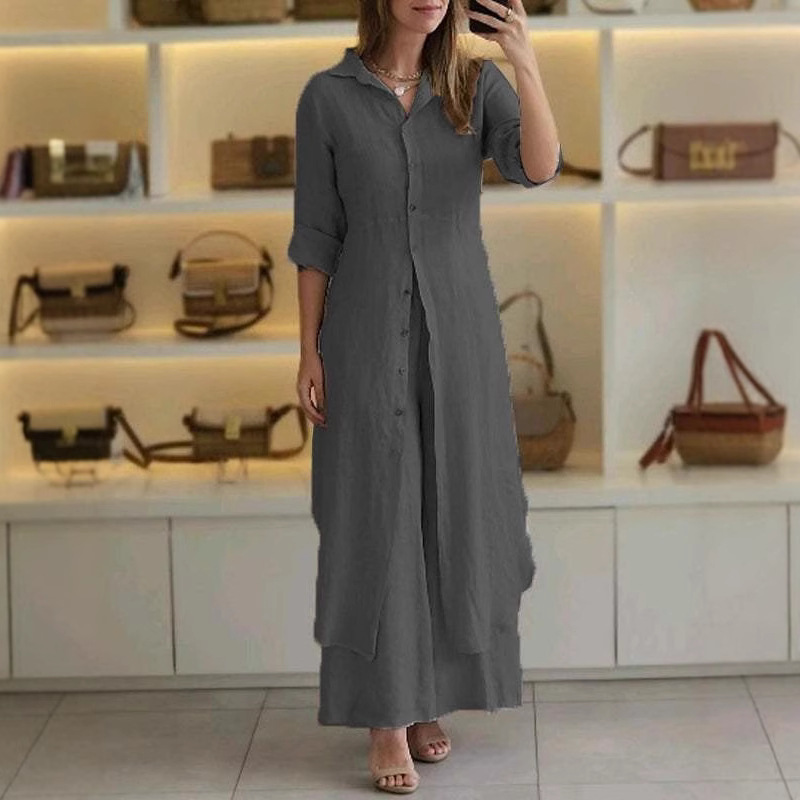 • 2025欧美女装新款夏秋都市优雅棉麻修身收腰长袖衬衫阔腿裤套装女折扣价:53