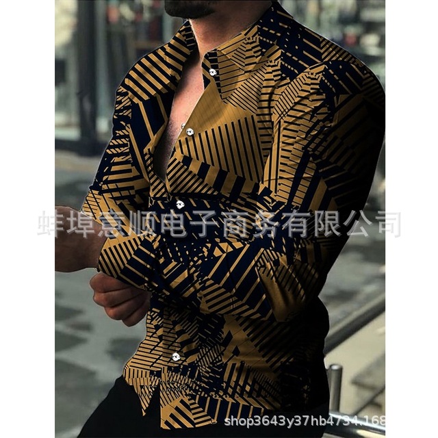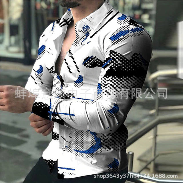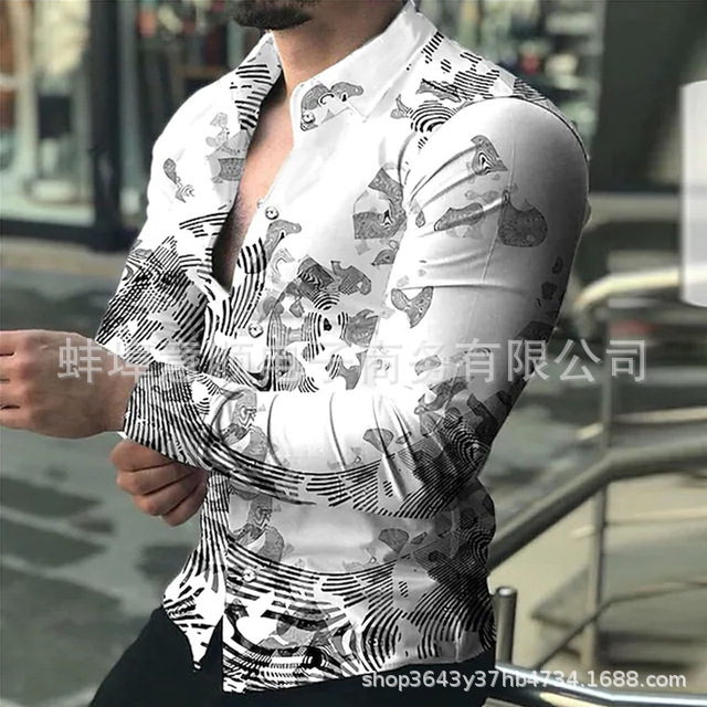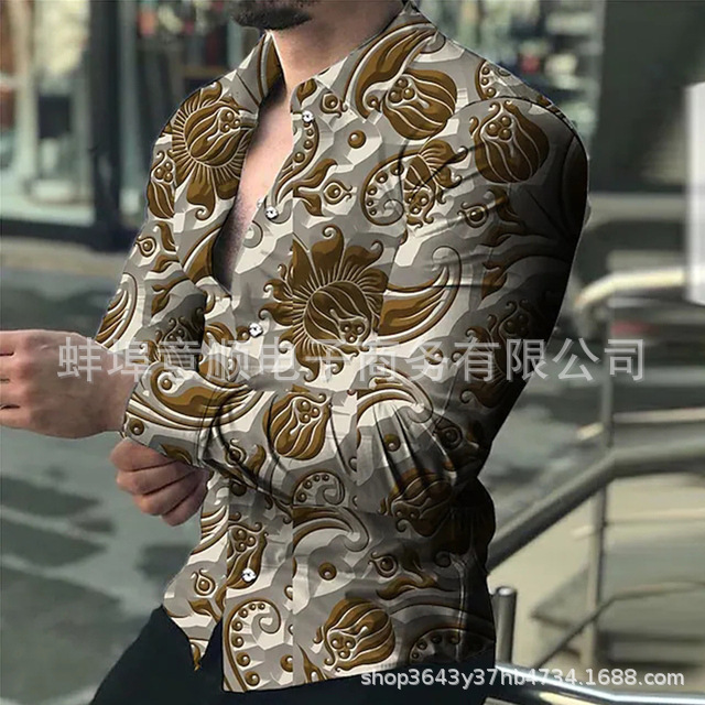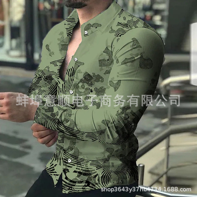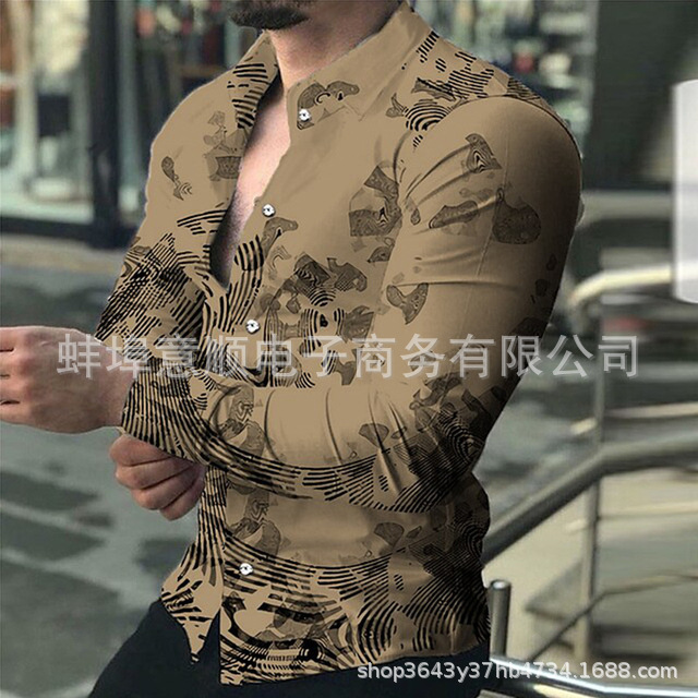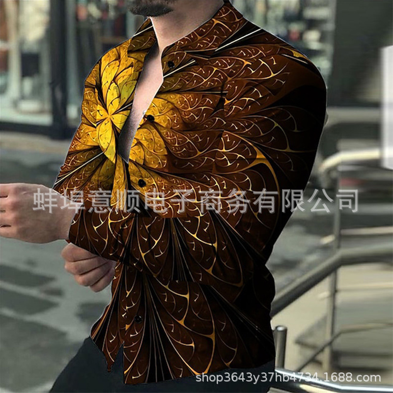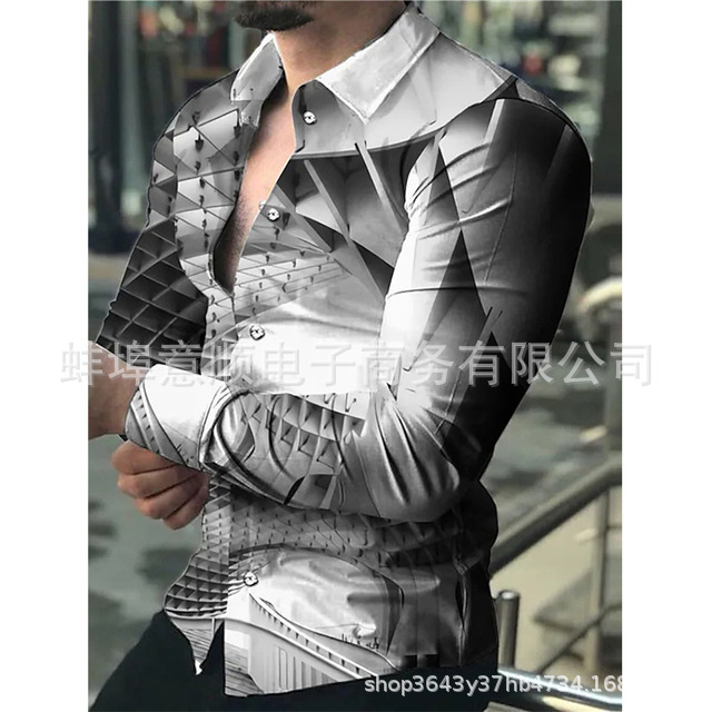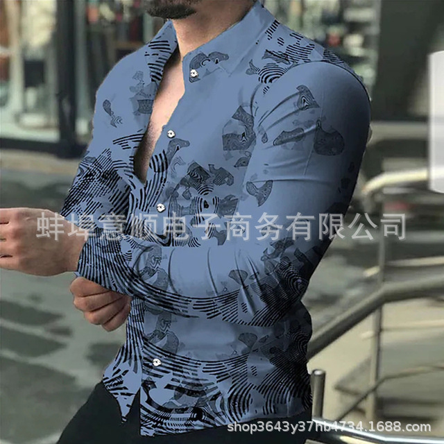 AliExpress 아마존 크로스 국경 대외 무역 새로운 플러스 사이즈 남성 캐주얼 슬림 핏 패션 3D 인쇄 긴 소매 셔츠 남성용스토어 가기