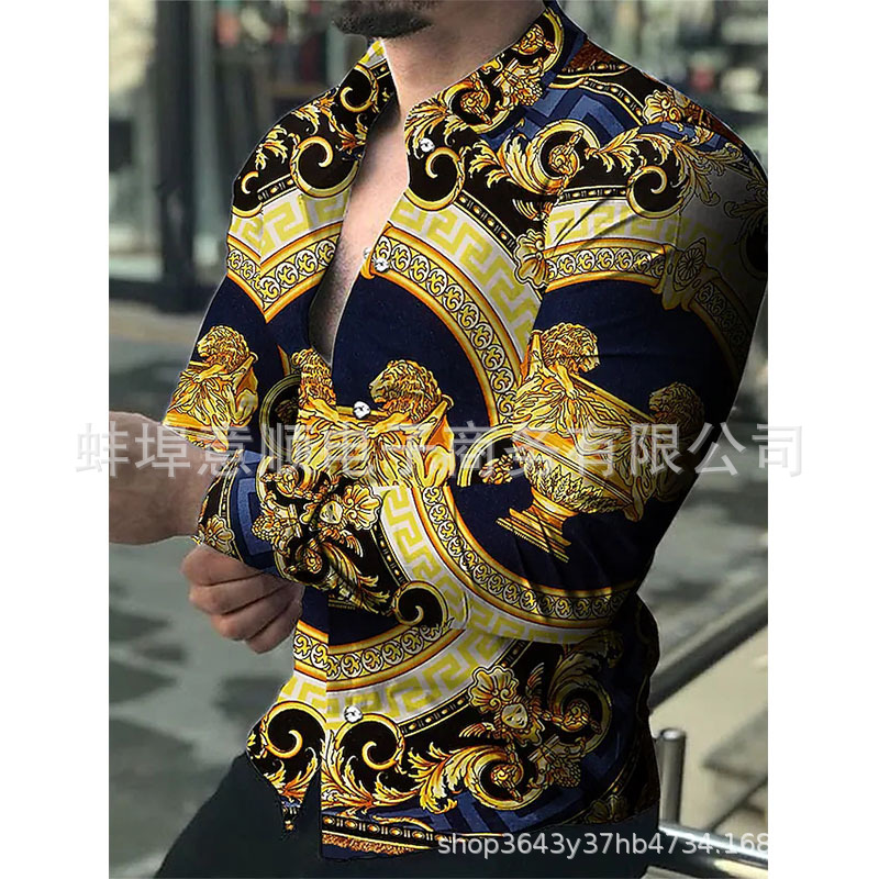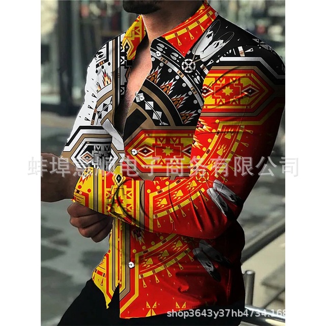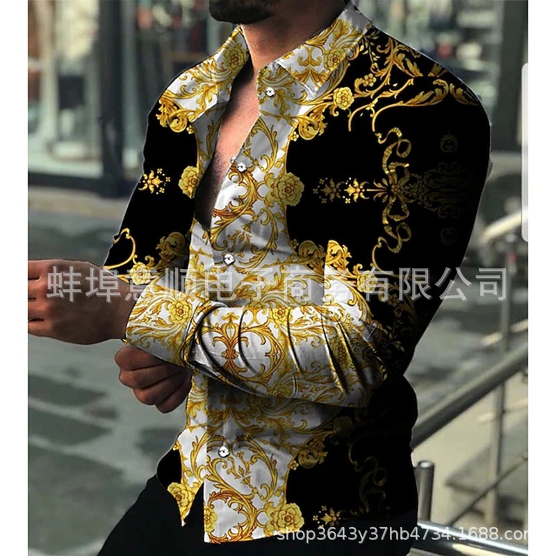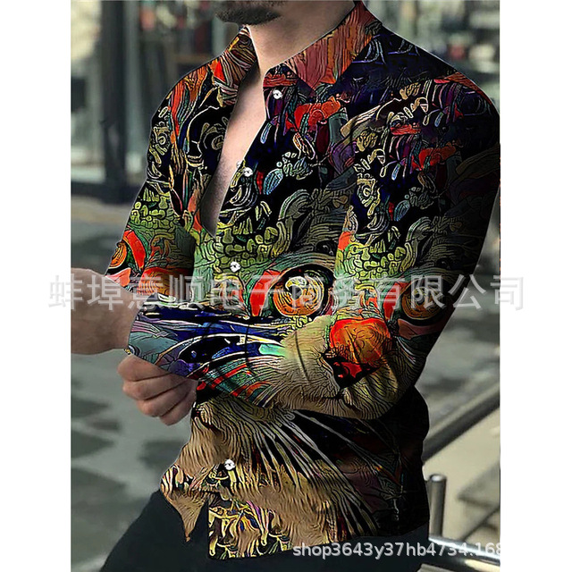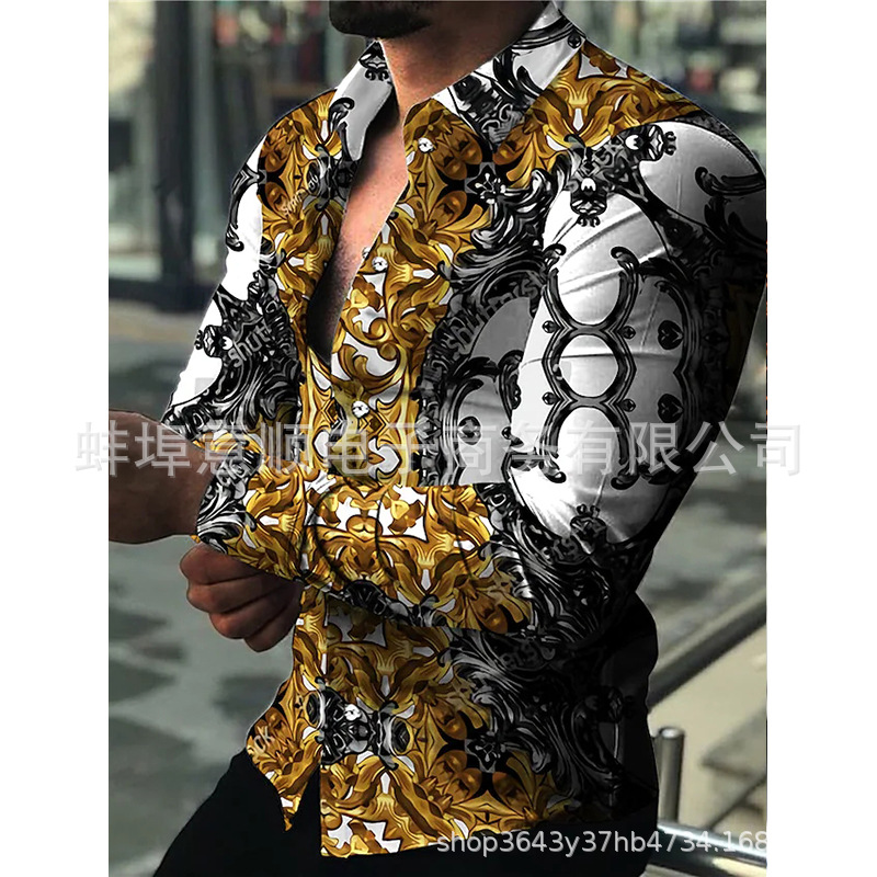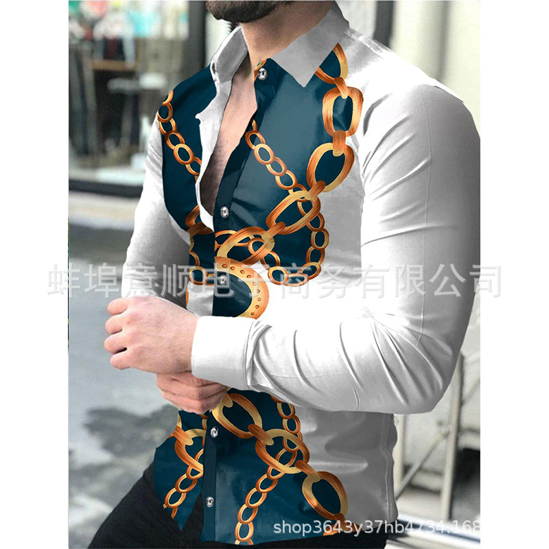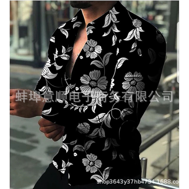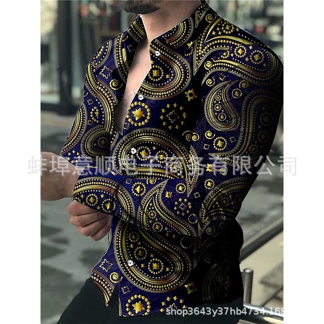 AliExpress 아마존 크로스 국경 대외 무역 새로운 플러스 사이즈 남성 캐주얼 슬림 핏 패션 3D 인쇄 긴 소매 셔츠 남성용스토어 가기