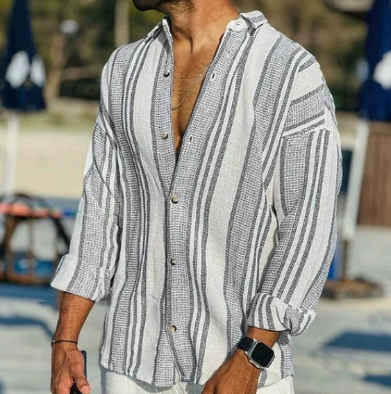 AliExpress 아마존 크로스 국경 대외 무역 새로운 플러스 사이즈 남성 캐주얼 슬림 핏 패션 3D 인쇄 긴 소매 셔츠 남성용
