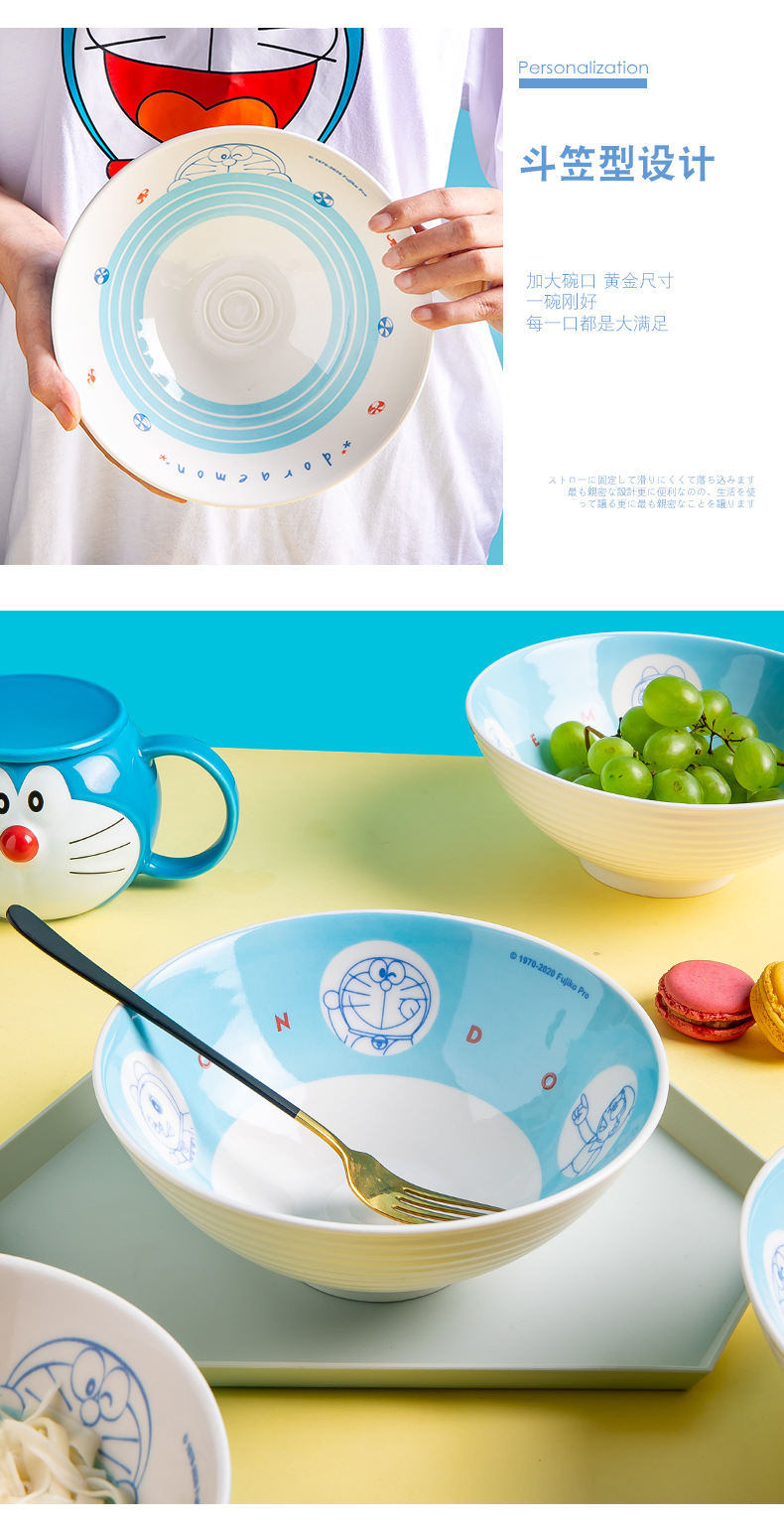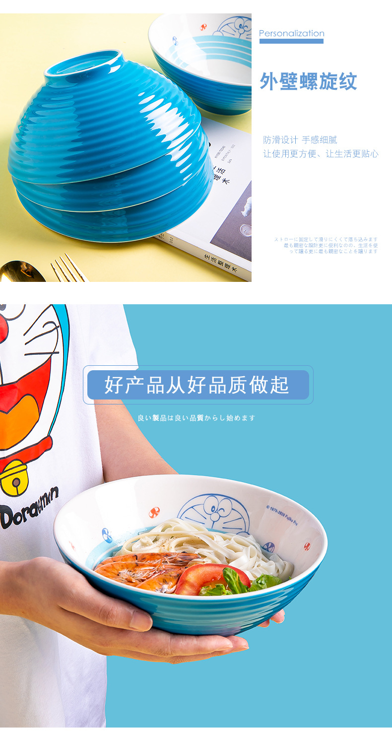 도라에몽 라면 그릇 일본식 세라믹 식기 국수 그릇 큰 그릇 수프 그릇 큰 그릇 만화 가정용 양동이 그릇