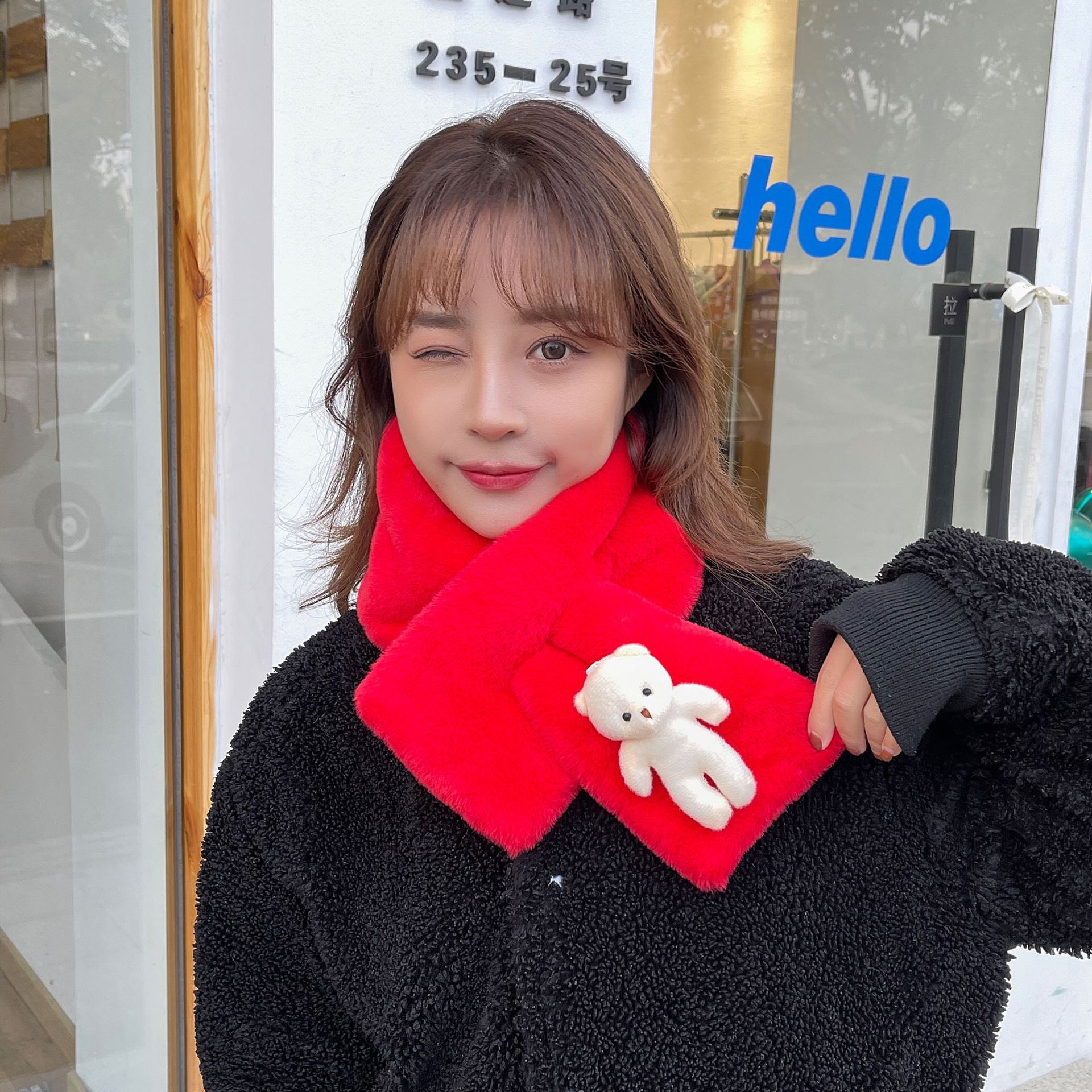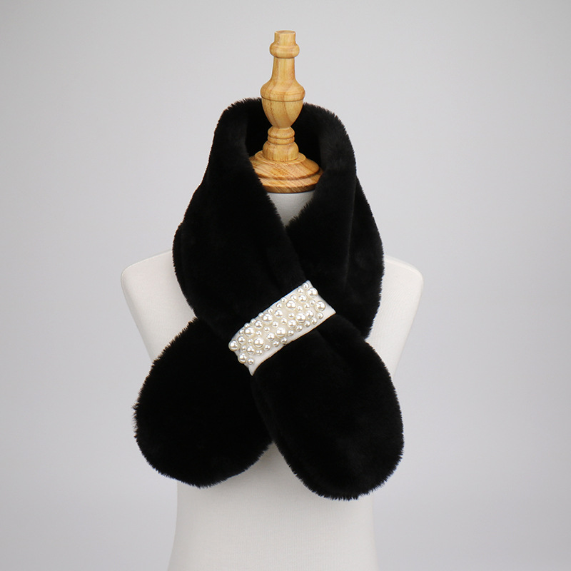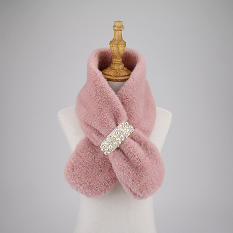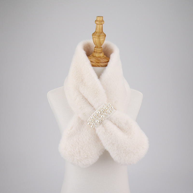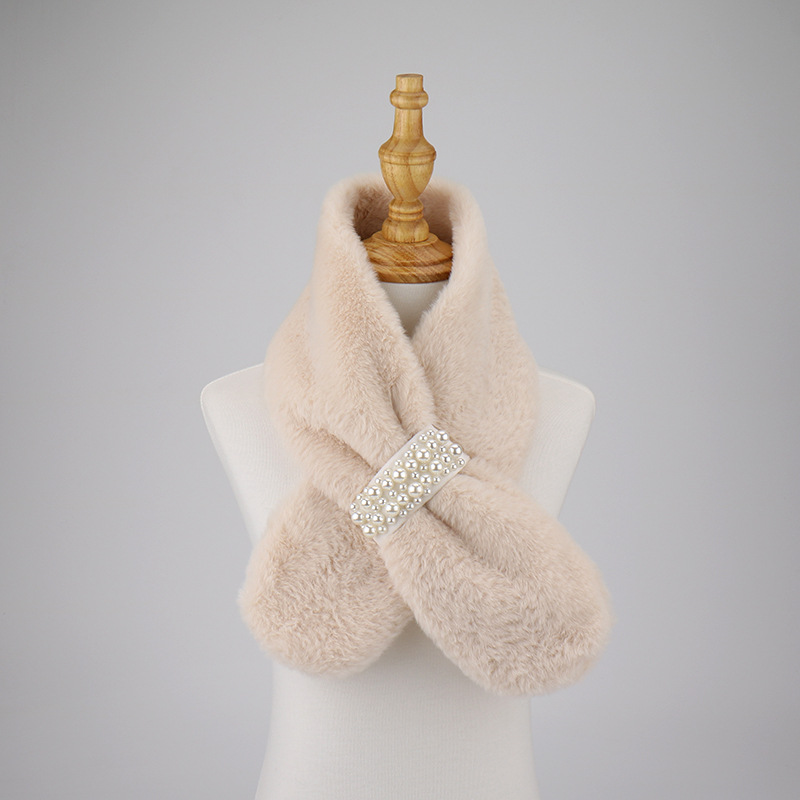 스카프 여성 가을, 겨울 하이 엔드 모조 렉스 토끼 모피 두꺼운 따뜻한 크로스 진주 버클 한국어 인기 플러시 스카프스토어 가기