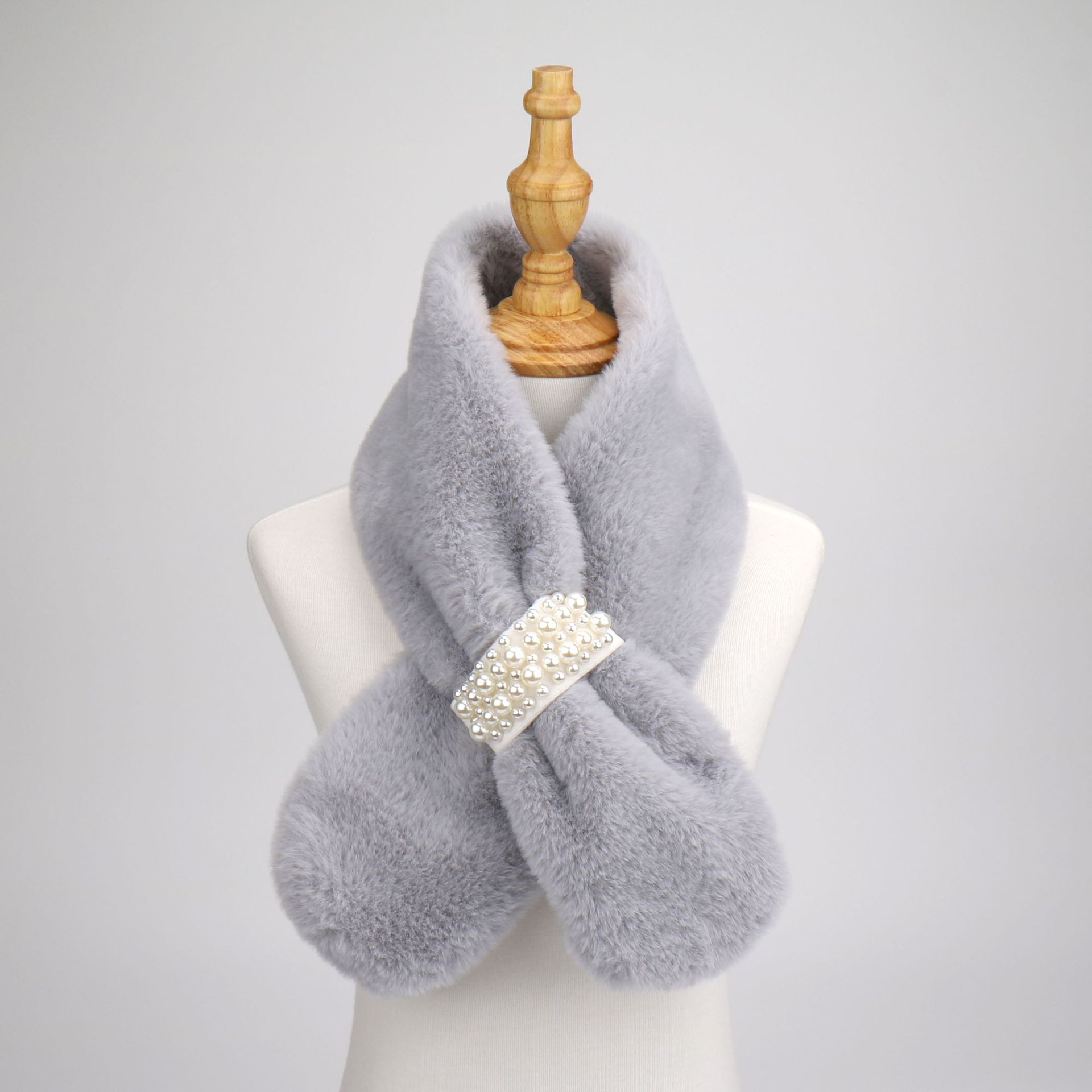 스카프 여성 가을, 겨울 하이 엔드 모조 렉스 토끼 모피 두꺼운 따뜻한 크로스 진주 버클 한국어 인기 플러시 스카프