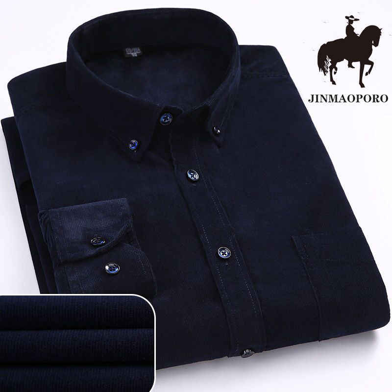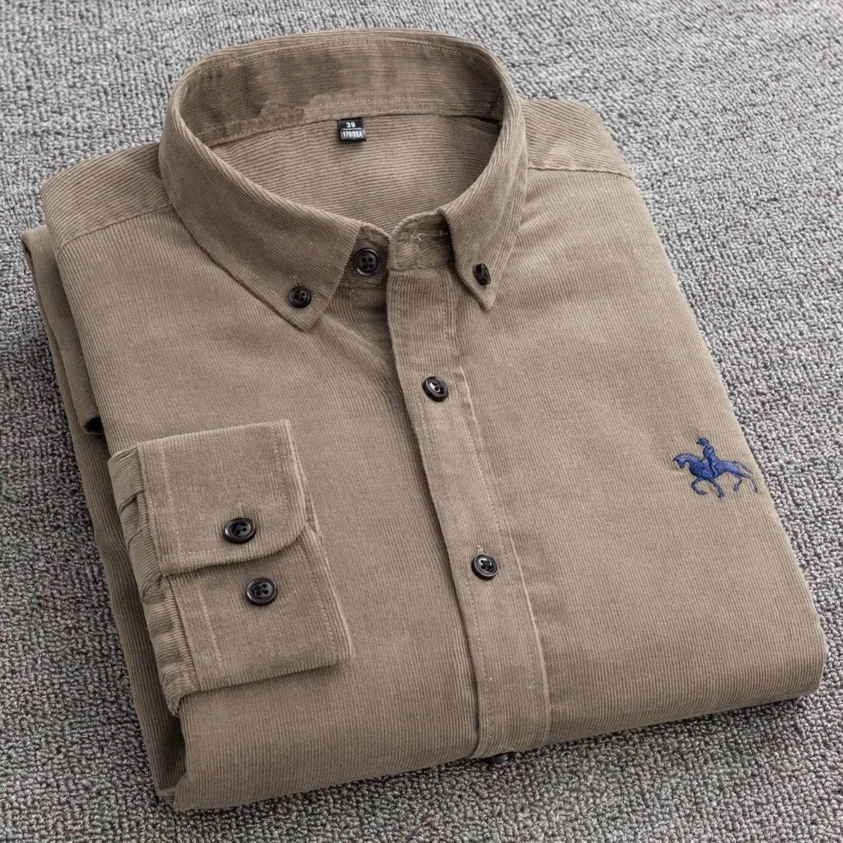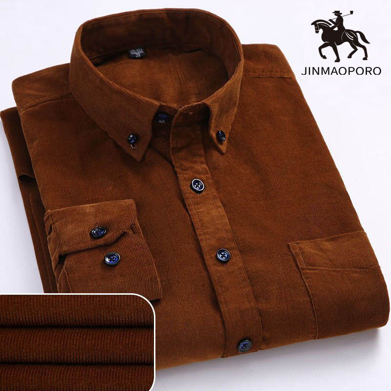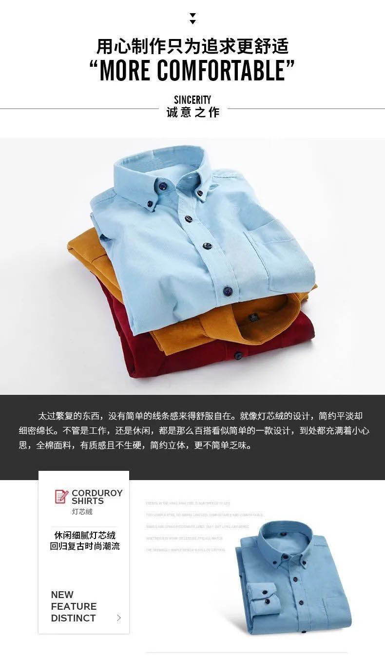 가을, 겨울 100% 코튼 코듀로이 셔츠 남성 긴팔 캐주얼 셔츠 청소년 중년 루즈 대형 아빠 착용