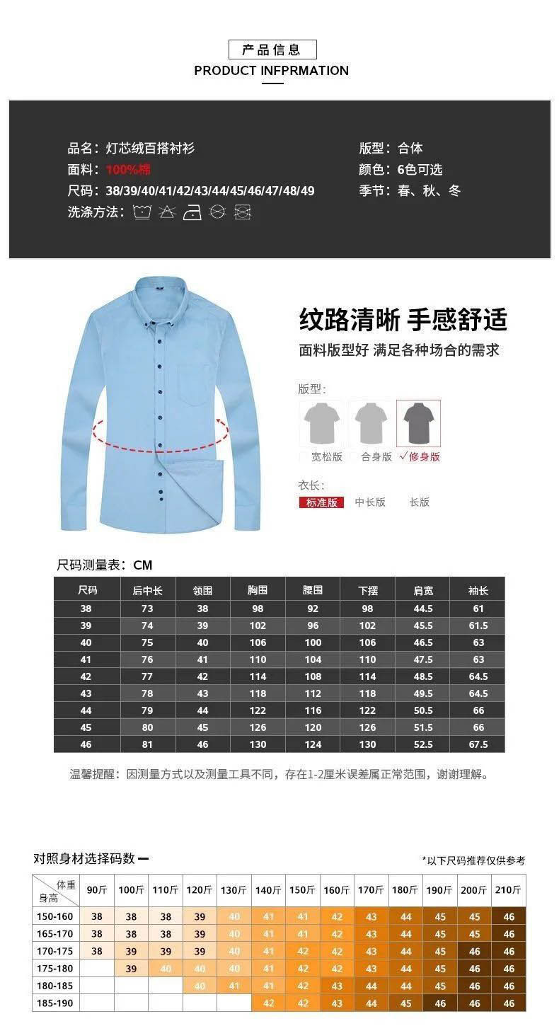 가을, 겨울 100% 코튼 코듀로이 셔츠 남성 긴팔 캐주얼 셔츠 청소년 중년 루즈 대형 아빠 착용스토어 가기