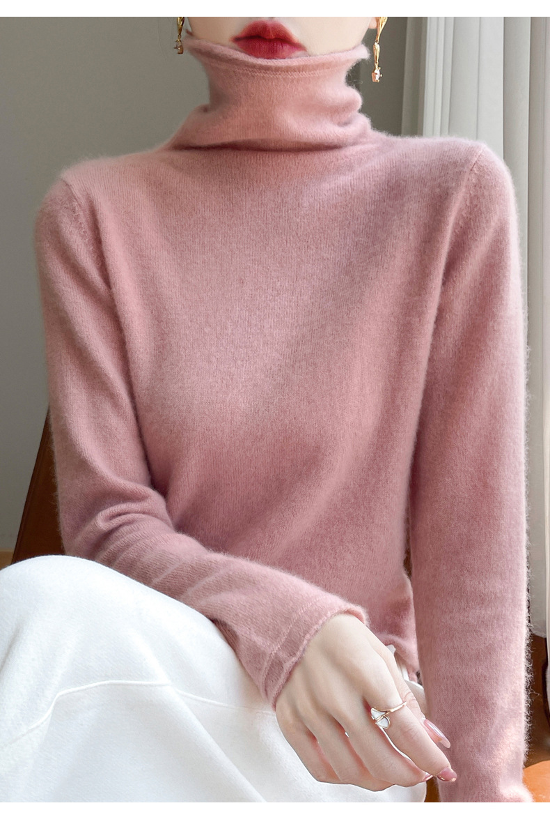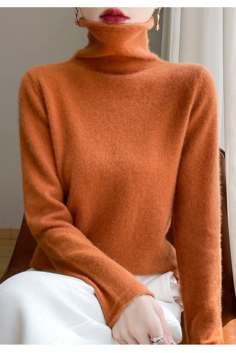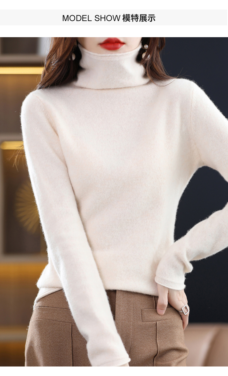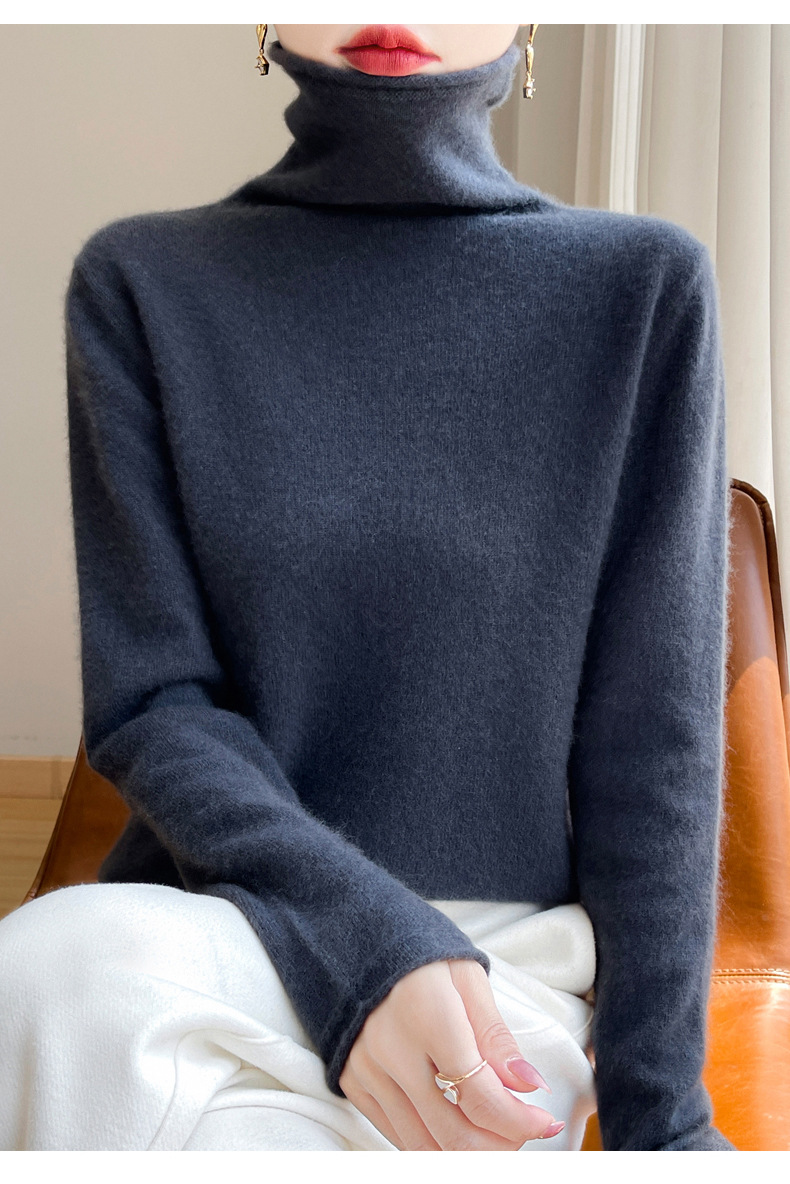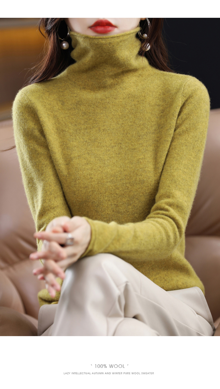 컬링 파일 칼라 울 스웨터 여성용 100 퓨어 울베이스 셔츠 가을과 겨울 새로운 하이 넥 캐시미어 니트 스웨터스토어 가기
