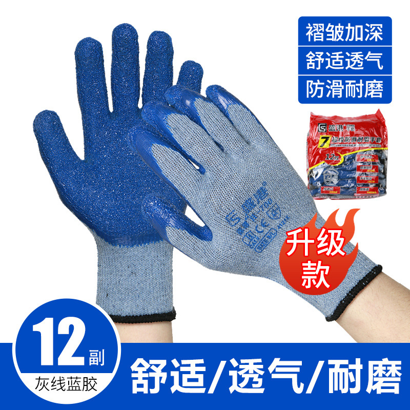 Maozheng 노동 보호 수입 라텍스 면사 코팅 보호 유리 공장 미끄럼 방지 주름 편안한 내마모성 교수형 고무 장갑스토어 가기
