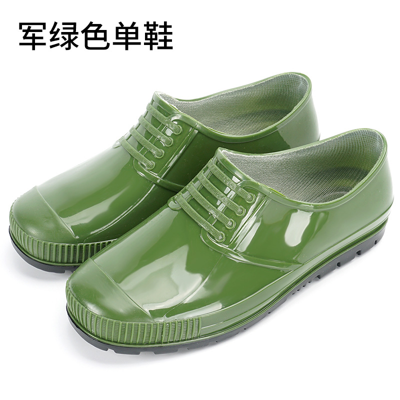 레인 부츠 로우 컷 남성용 워터 부츠 레인 부츠 내마모성 미끄럼 방지 방수 기모 오버 슈즈 남성용 노동 보호 얕은 입 녹색 고무 신발