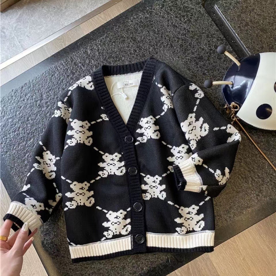 합성 크리스탈 벨벳 인테리어 새로운 소년과 소녀 기모 스웨터 니트 카디건 코트 가을과 겨울 아기 한국 스타일스토어 가기