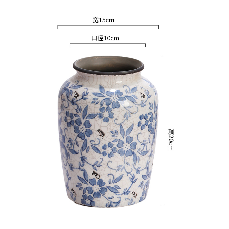 중국 고전 미국 컨트리 꽃 도자기 파란색과 흰색 도자기 얼음 균열 꽃 말린 꽃 수경 세라믹 고급 꽃병스토어 가기