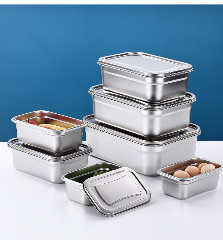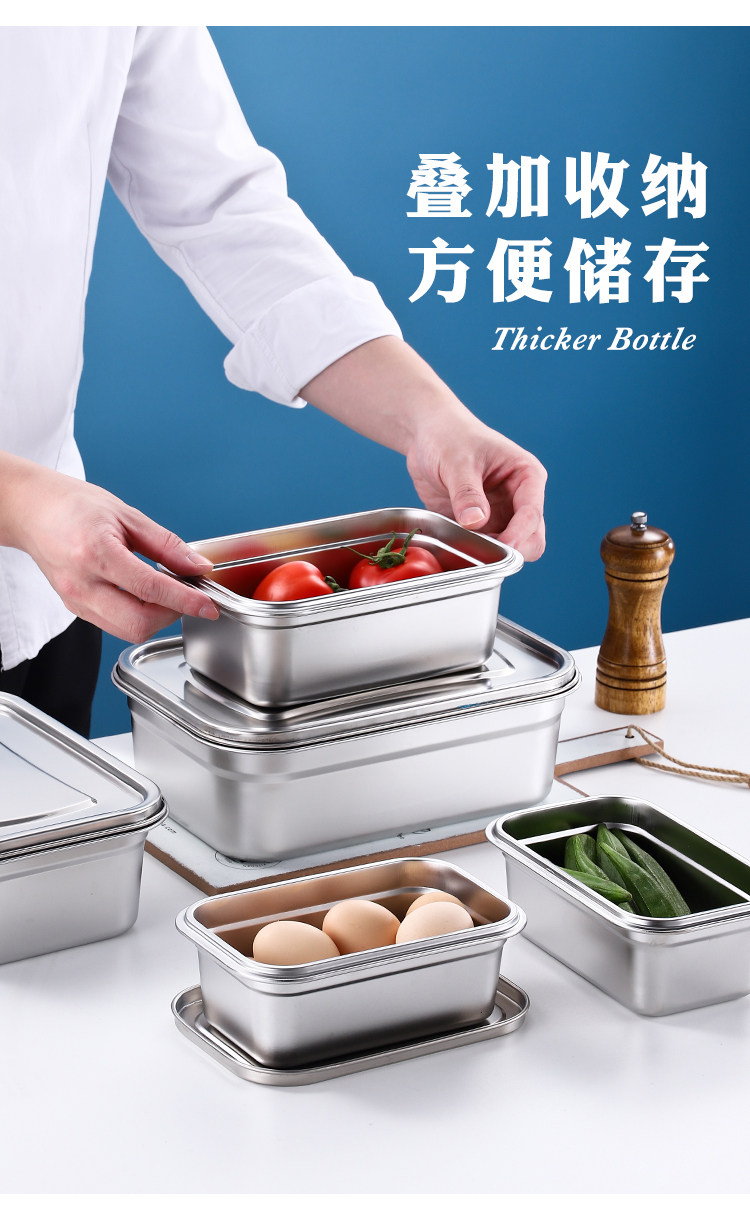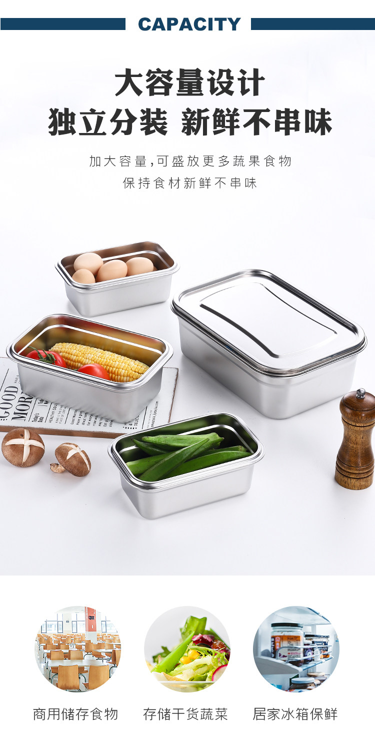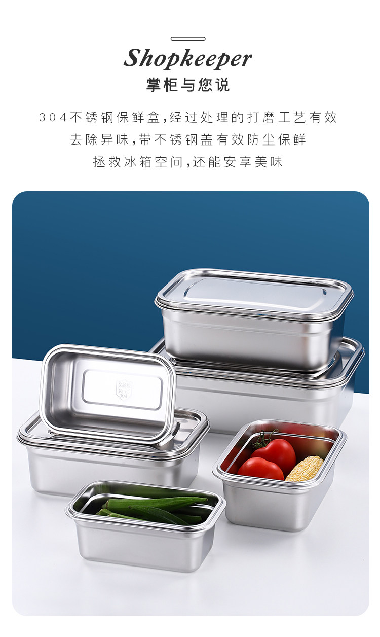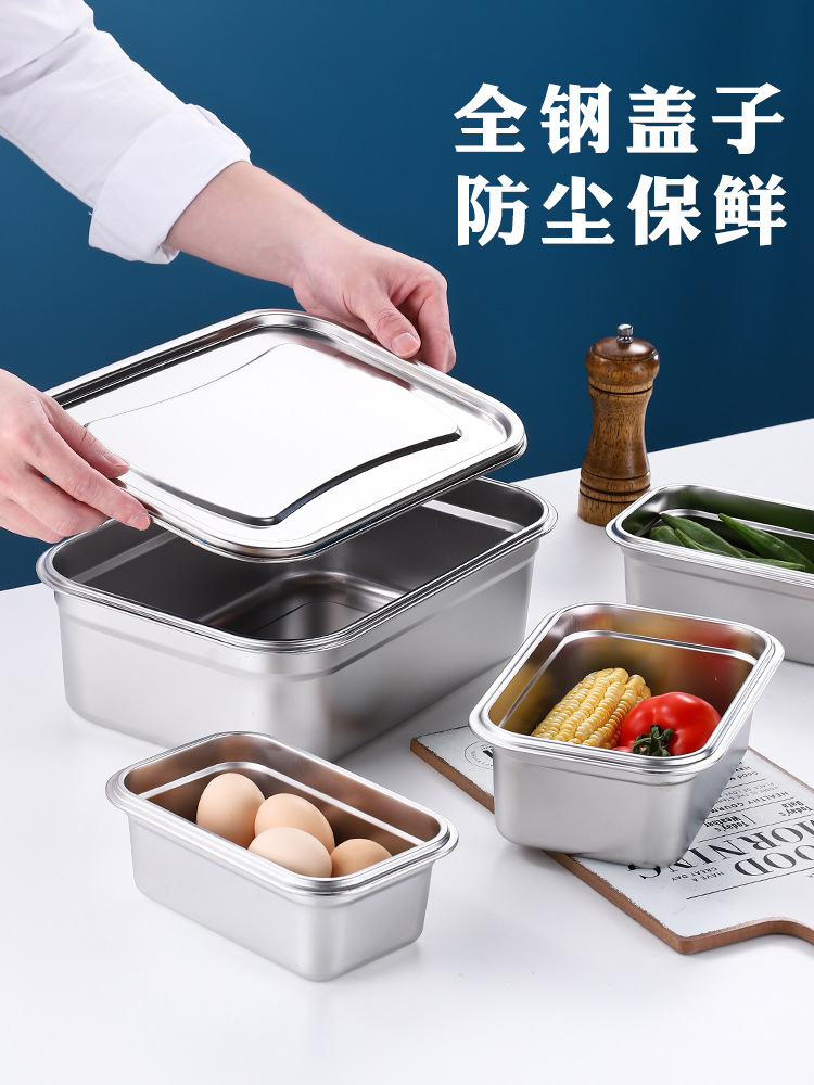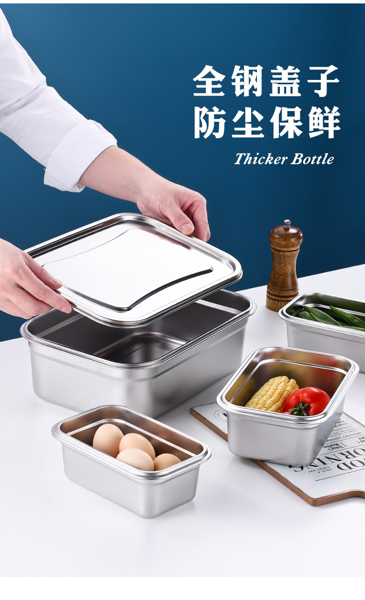 상업용 304 스테인레스 스틸 보존 상자 직사각형 도시락 뚜껑 냉동고 접시 디스플레이 야채 분지 대용량스토어 가기