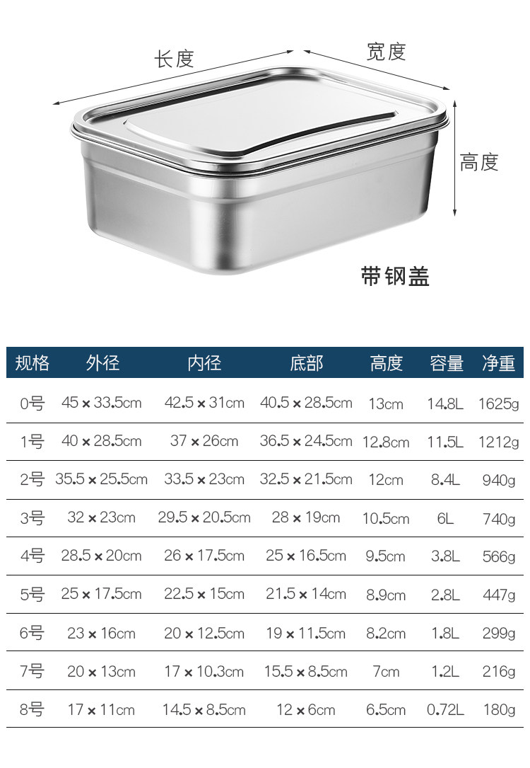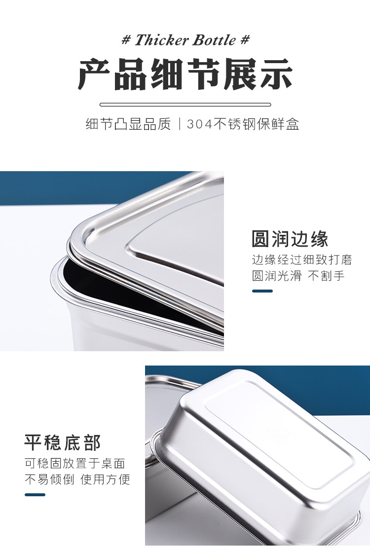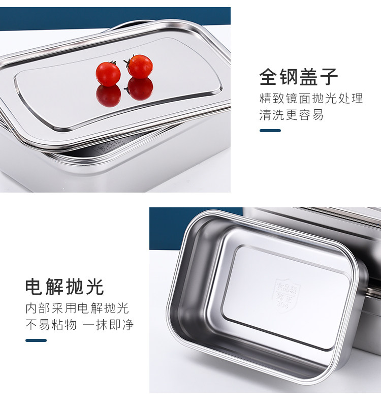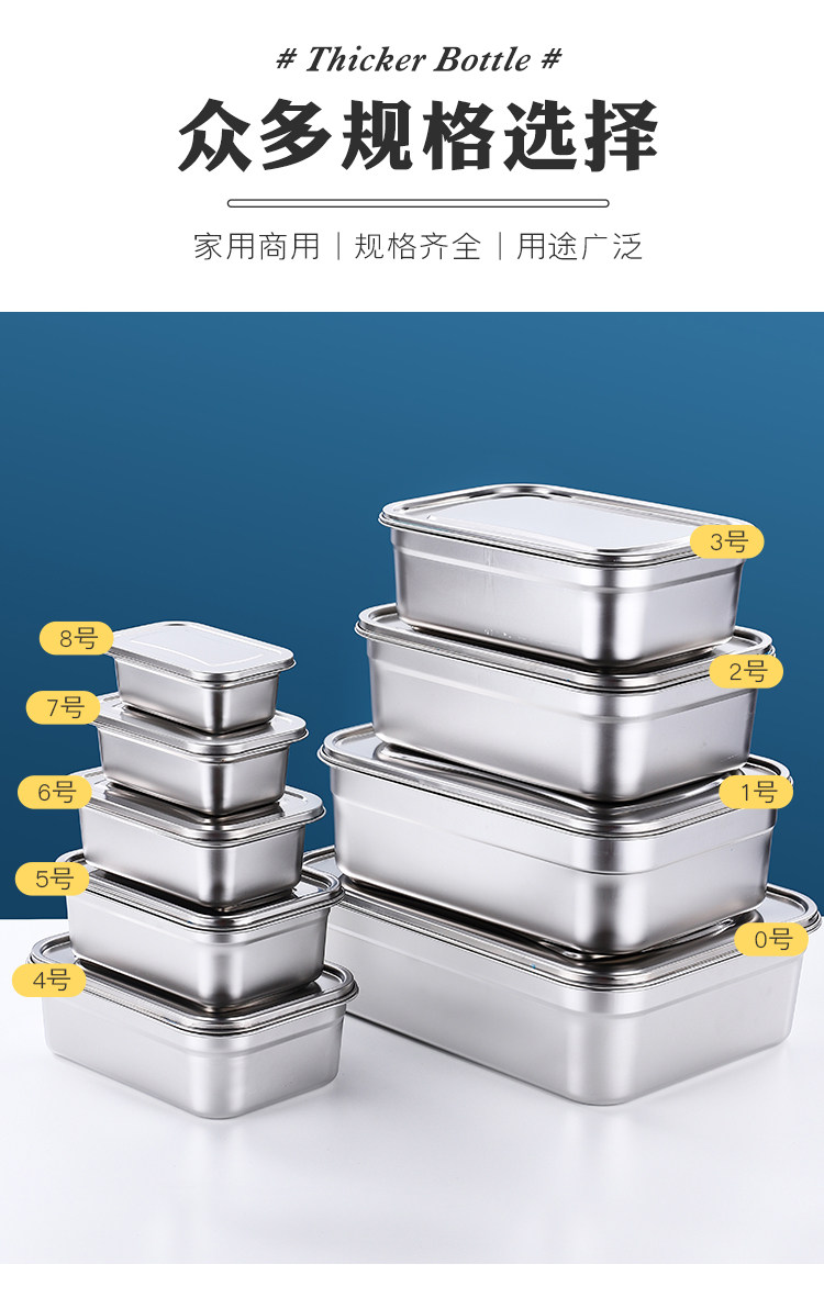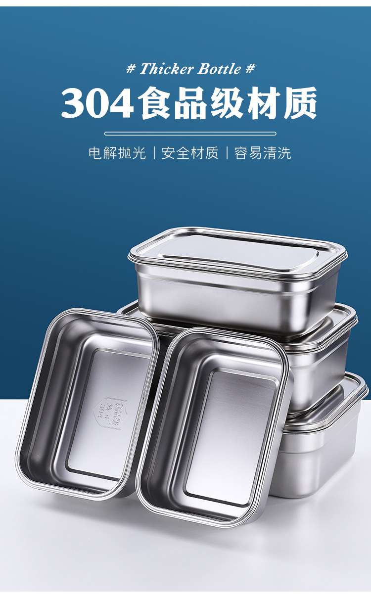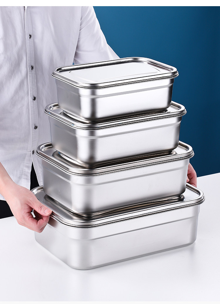 상업용 304 스테인레스 스틸 보존 상자 직사각형 도시락 뚜껑 냉동고 접시 디스플레이 야채 분지 대용량스토어 가기